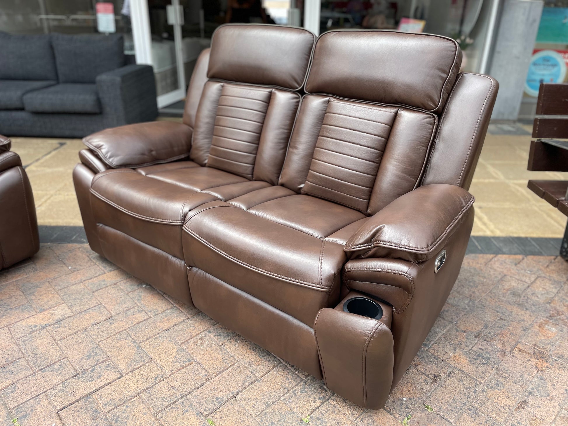Experience the ultimate in comfort and convenience with the Sevilla Power Recliner Wireless Charger 3+2 Suite. Not only does it feature power recliners for personalized relaxation, but it also has a wireless charger and a variety of charging ports for your devices. The built-in reading lights and cinema lights create a cozy atmosphere while the easy wipe material and cup holders make upkeep a breeze. Available in black, grey, or brown tech leather, this suite is the perfect addition to any modern home!