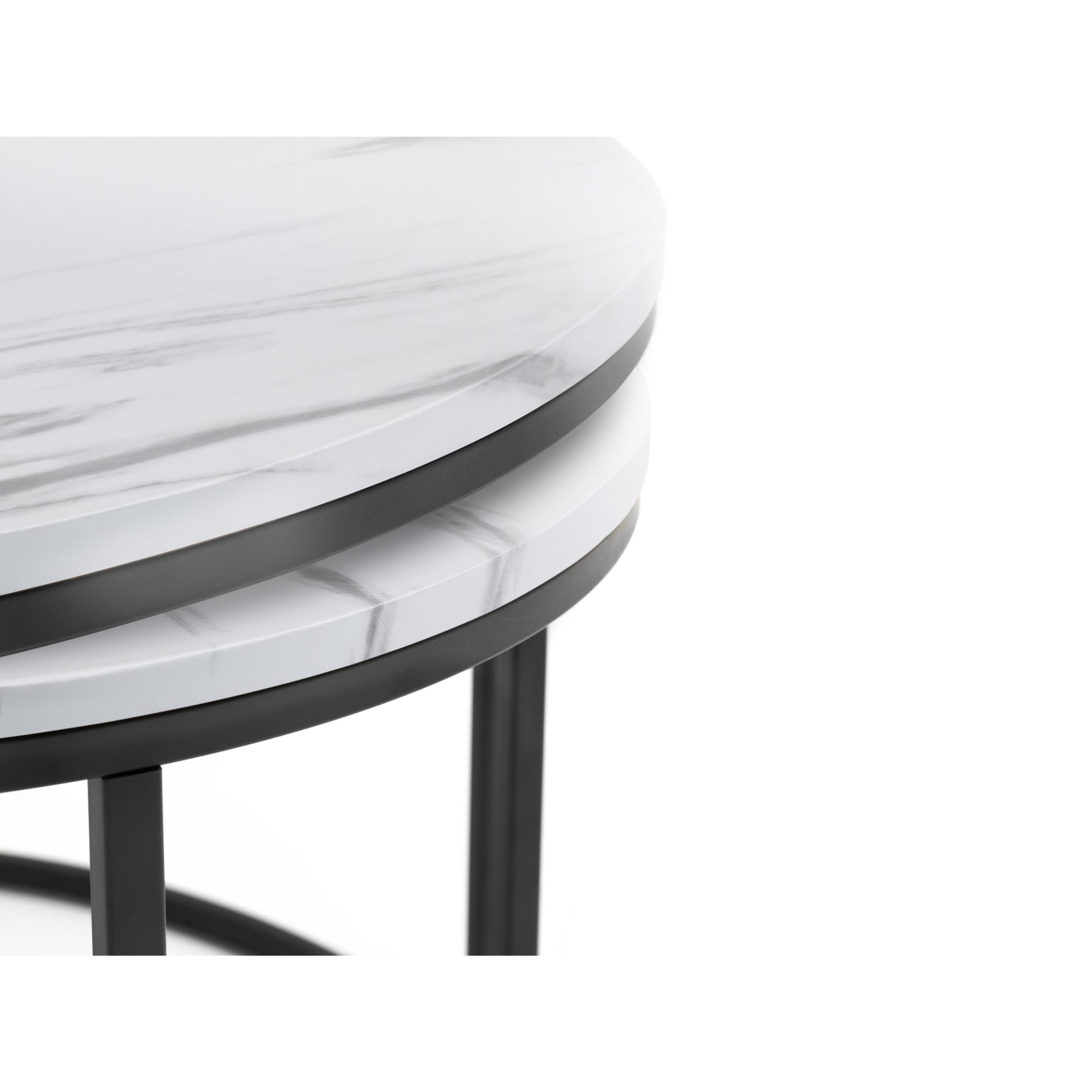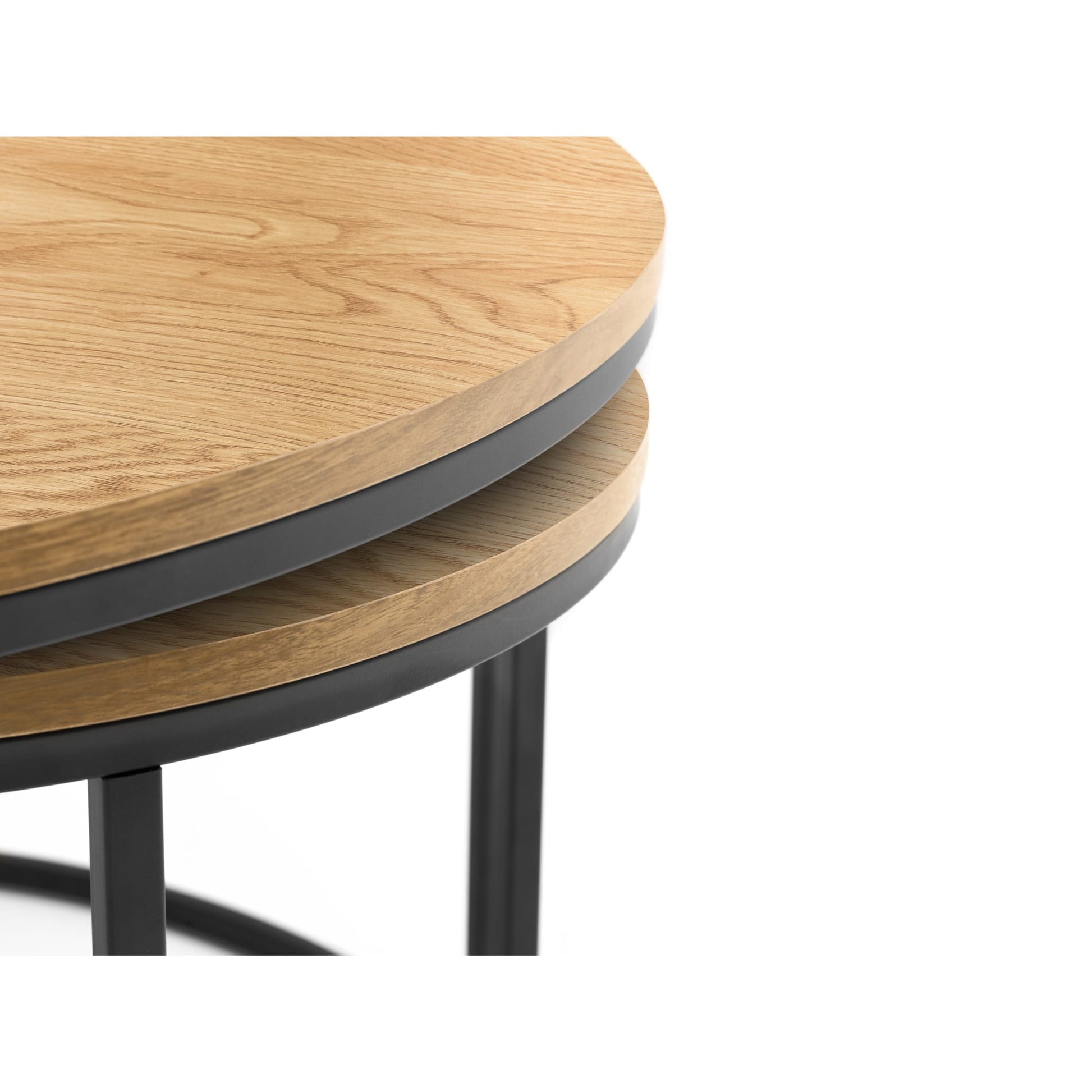 The Bellini Round Nesting Coffee Table ensures long lasting durability, crafted from black coated metal and MDF in a choice of finishes. This set of two coffee tables boasts a contemporary, stylish design with an industrial feel. Ensuring a space saving solution, the coffee tables slot together as and when they are in use.
