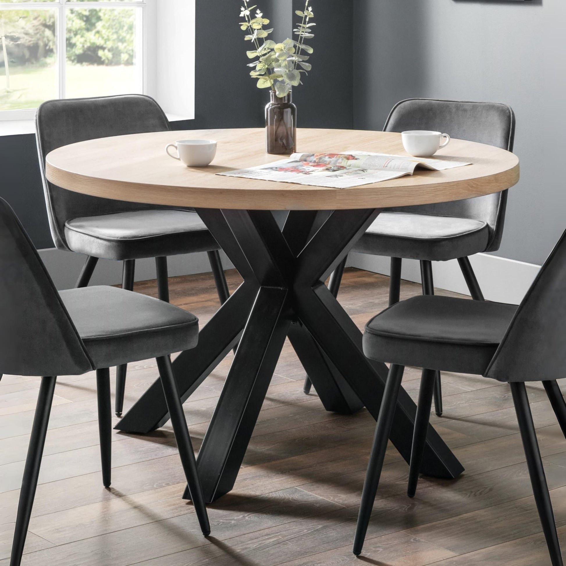 As an alternative to the rectangular table, the Berwick Round Table gives an industrial feel to your dining area. With an easy-to-clean oak top and black frame legs, this table will provide you and your family with a relaxed dining experience.