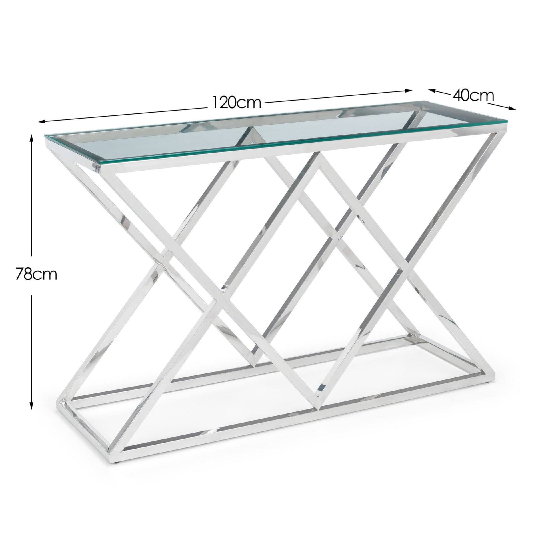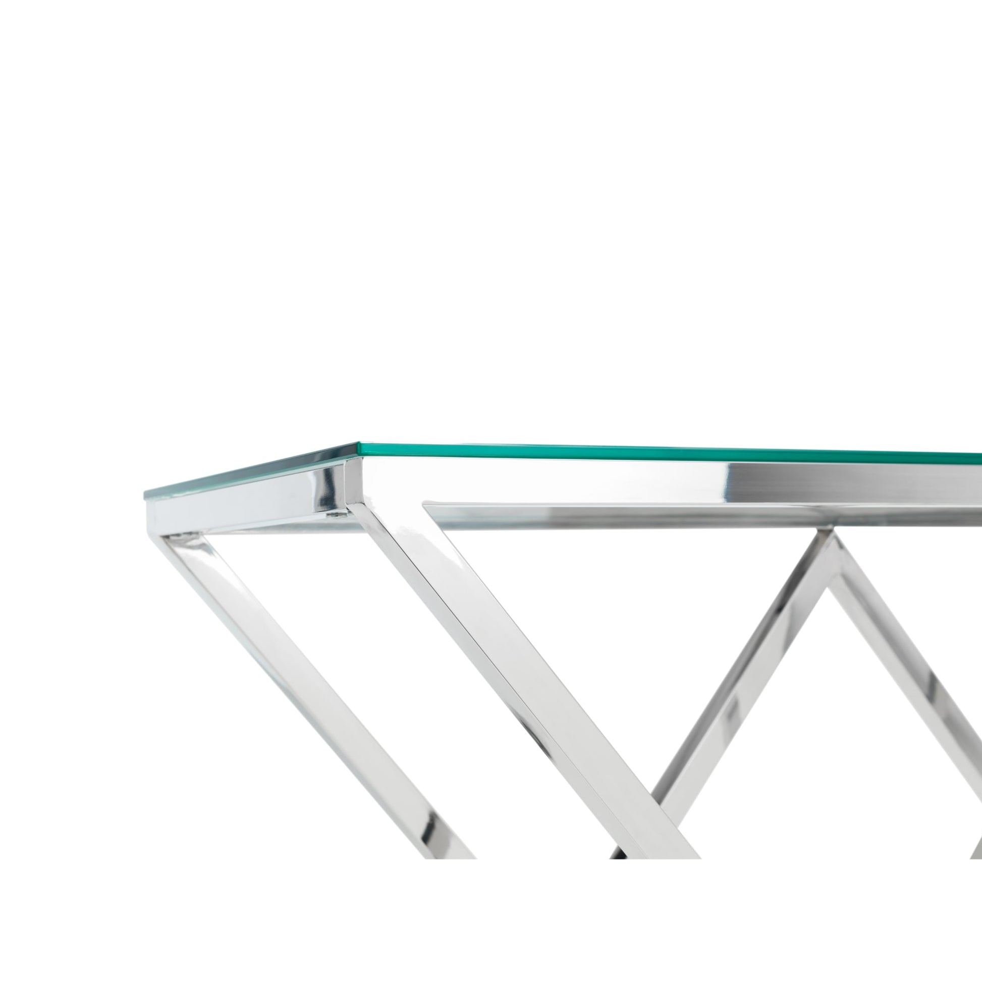 The Biarritz occasional collection will add a touch of elegance and extravagance to any home. Featuring a striking cross frame design, this range is crafted from high quality stainless steel and tempered glass. The Biarritz collection includes a lamp table, coffee table, and console table.