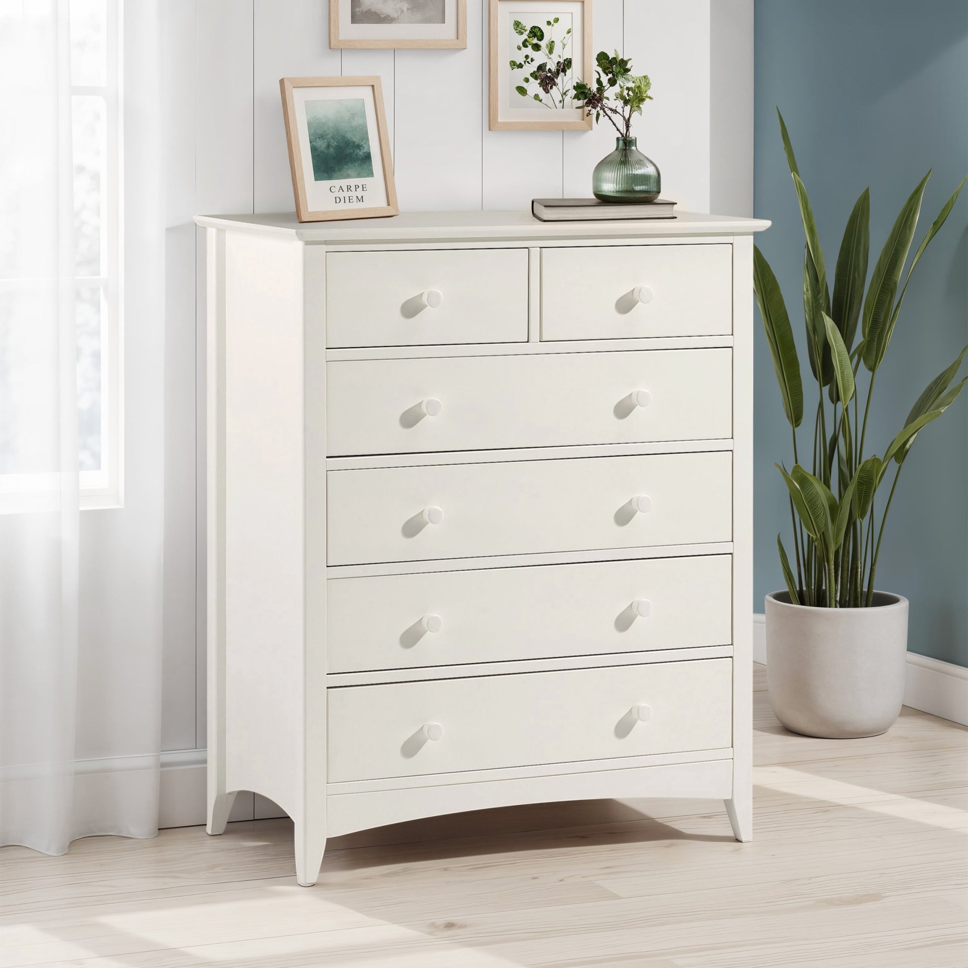 Cameo is a beautiful bedroom range. Its timeless shaker design is the perfect accompaniment to any interior style and is perfect for grown-up bedrooms and children's bedrooms alike. Solid pine frames ensure a sturdy and durable construction. The Cameo 4+2 chest offers a great storage solution with 2 small drawers and 4 large drawers.