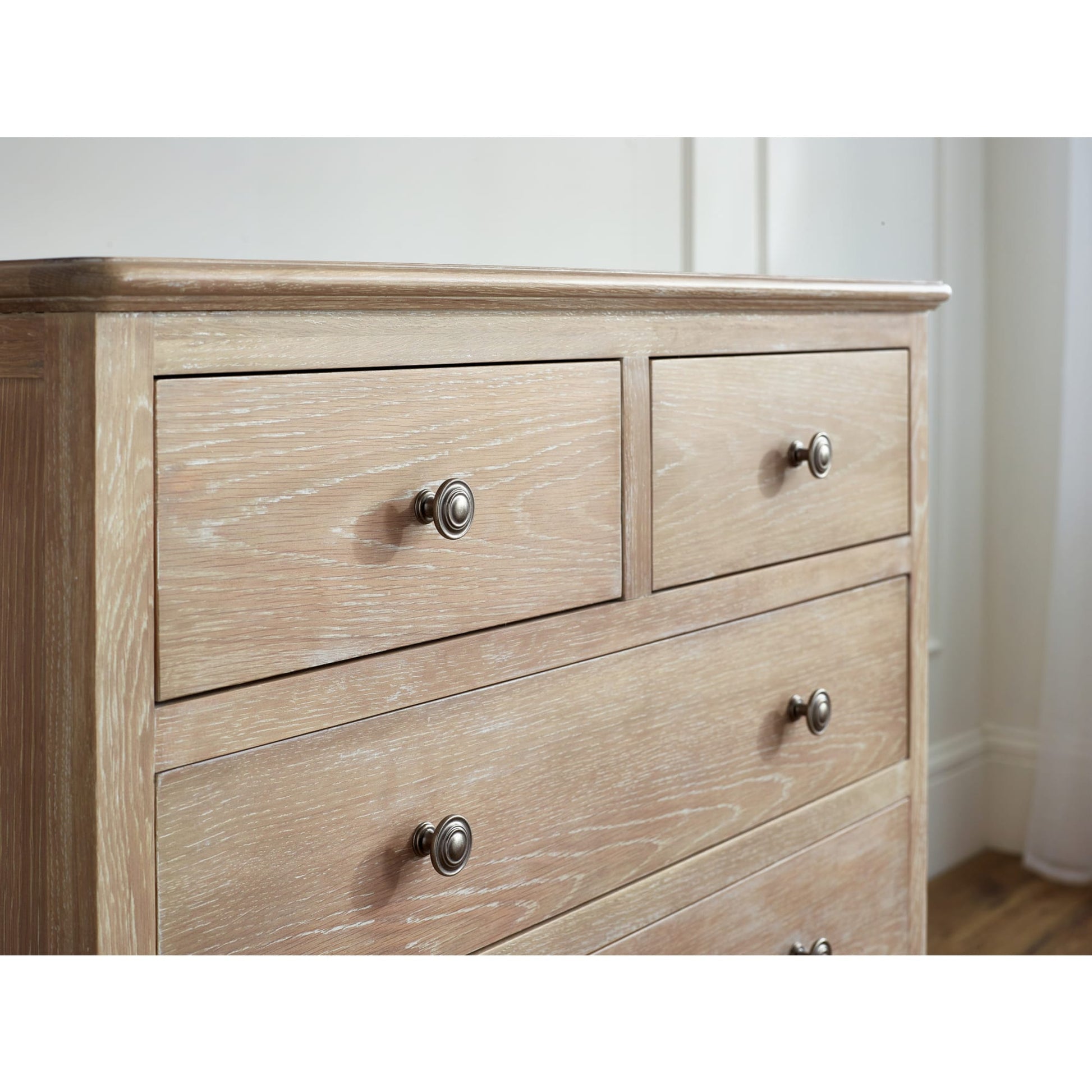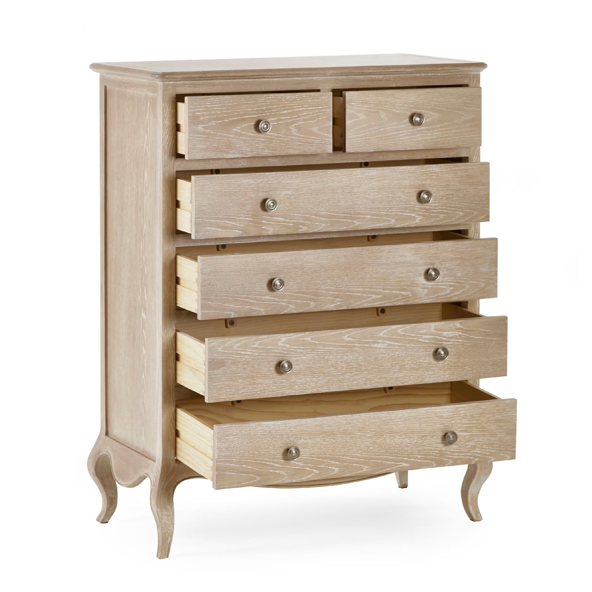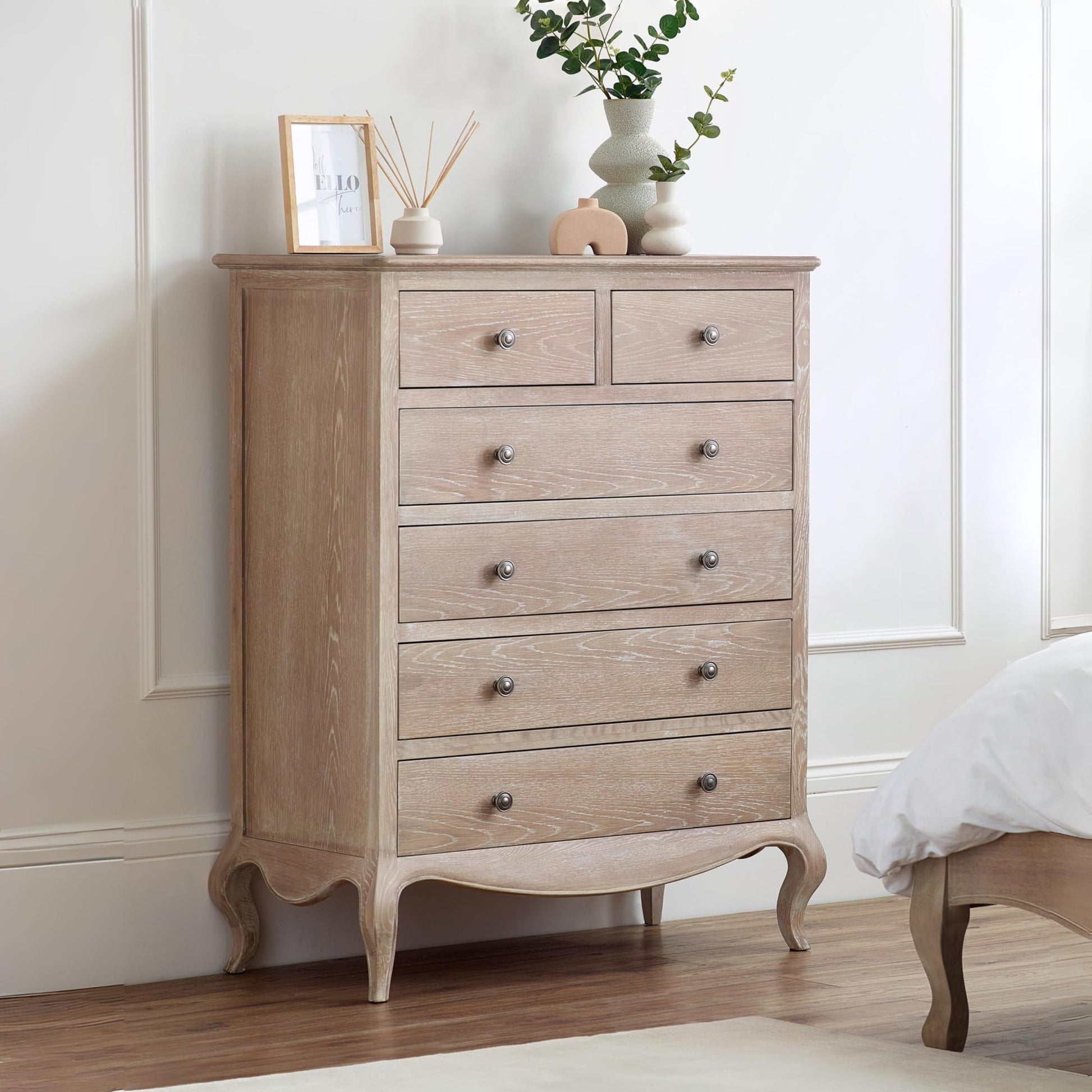 Inspired by French design, the Camille bedroom range boasts beautiful curves and soft lines. Featuring traditional ornate details – this collection exudes elegance, and includes: a 2-drawer bedside, 4+2 chest, 6 drawer wide chest, combination wardrobe and dressing table with stool. Match with the Camille bed to conclude the look immaculately.