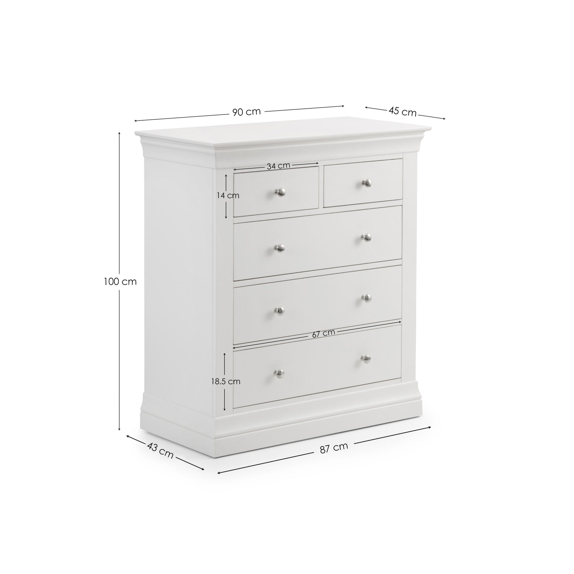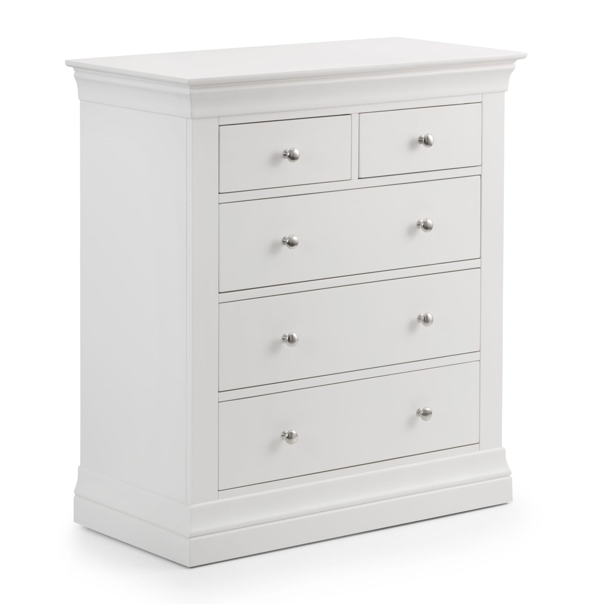 The Clermont Chest is finished in a striking white lacquered finish, with simple clear lines that add a feeling of light and space. Crafted from Pine and MDF, featuring brushed steel handles, this elegant French inspired design is suitable for both contemporary and traditional settings. The Clermont Chest offers a mixture of small and large drawers, suitable for your T-shirts, underwear and other items.