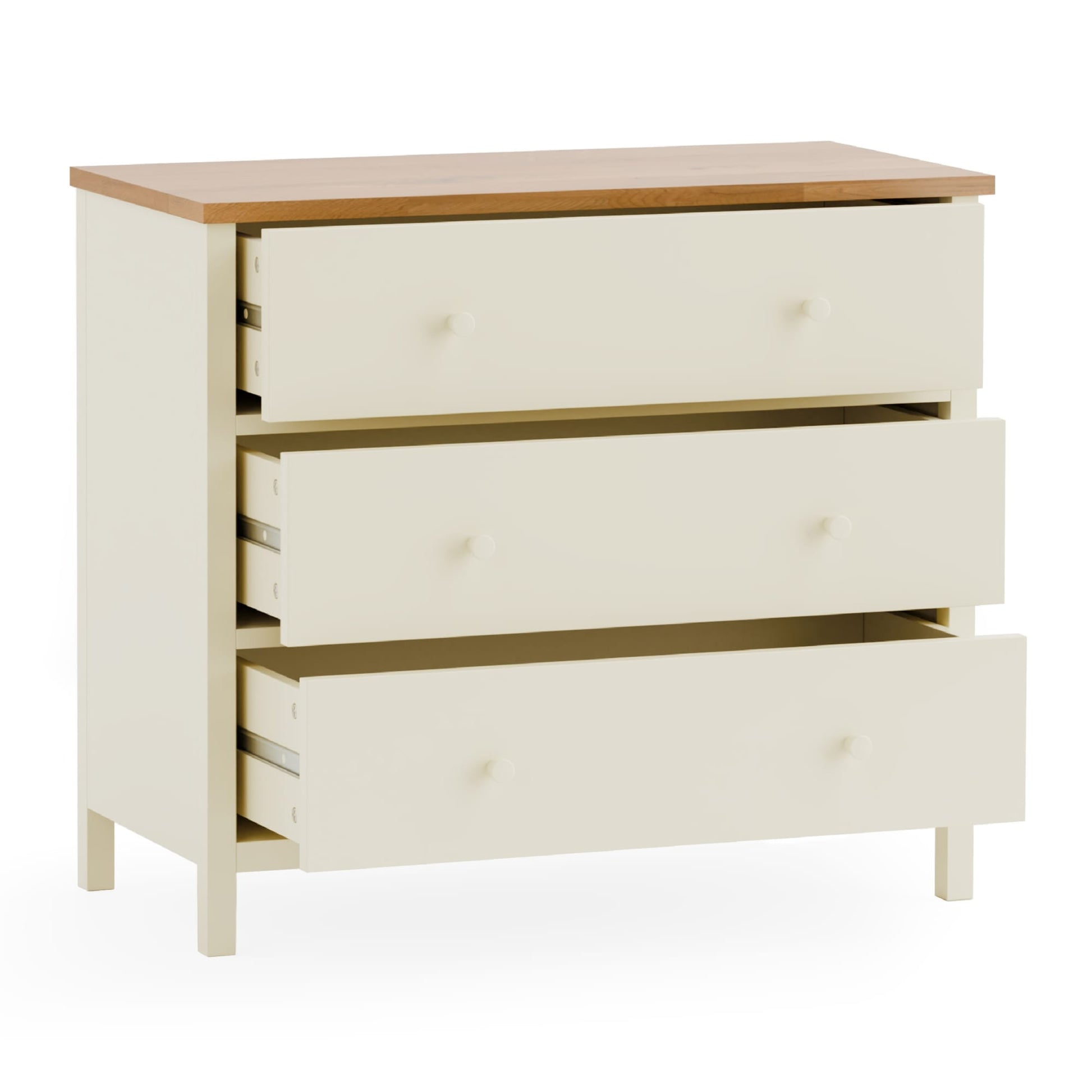Elevate your space with the Coxmoor 3 Drawer Chest, featuring three spacious drawers with sleek, rounded knob handles to provide plenty of room for storing clothes, linens, and accessories, helping to keep your bedroom neat and tidy. The elegant design adds a touch of natural style to your decor, while the robust construction supports long-lasting quality.