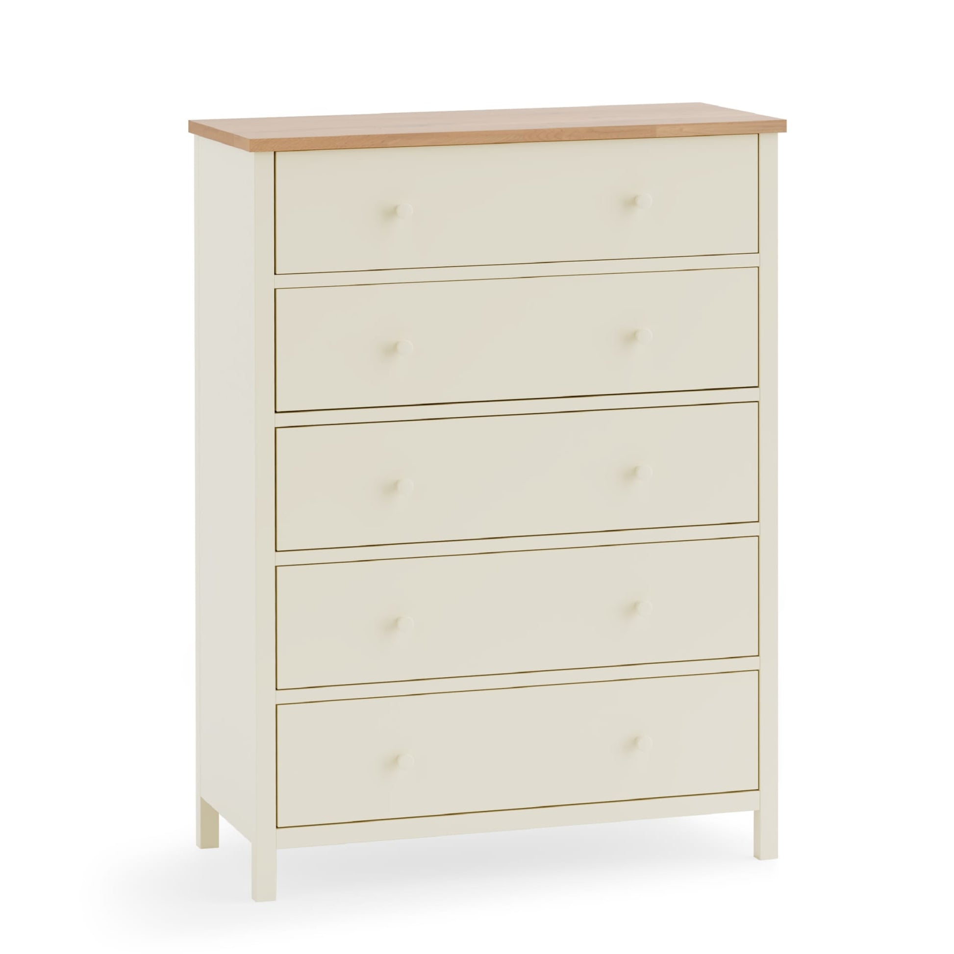 Upgrade your bedroom storage with the Coxmoor 5-Drawer Wide Chest, available in a choice of finishes. Designed with five generously sized drawers, each equipped with sleek knob handles, this chest offers ample space for clothes, bedding, and other essentials. Its horizontal layout maximizes storage while creating a stylish focal point in your room. The elegant finish options bring a sophisticated touch to your space, effortlessly complementing a variety of décor styles. Built for durability, this chest is a timeless addition to any home, combining both practical storage and elegant design. Requires full assembly.