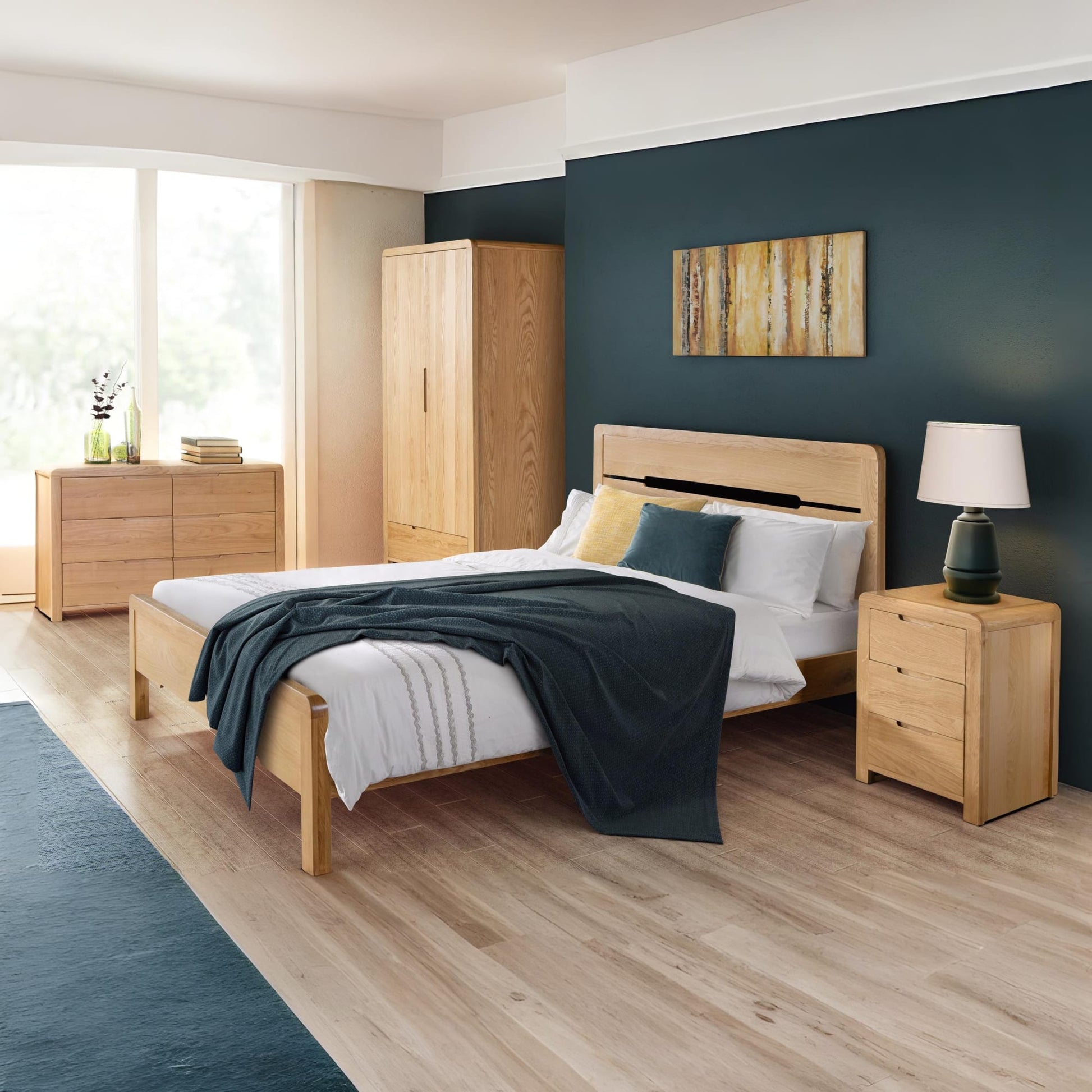 Crafted from oak, the Curve combines clean lines with a gentle curved edging, adding a stunning touch to any bedroom. Recessed handles enable easy opening and a modern feel. This Curve bedside features three drawers, suitable for those items needed at hands reach from your bed. Part of the extensive Curve bedroom range from Julian Bowen.