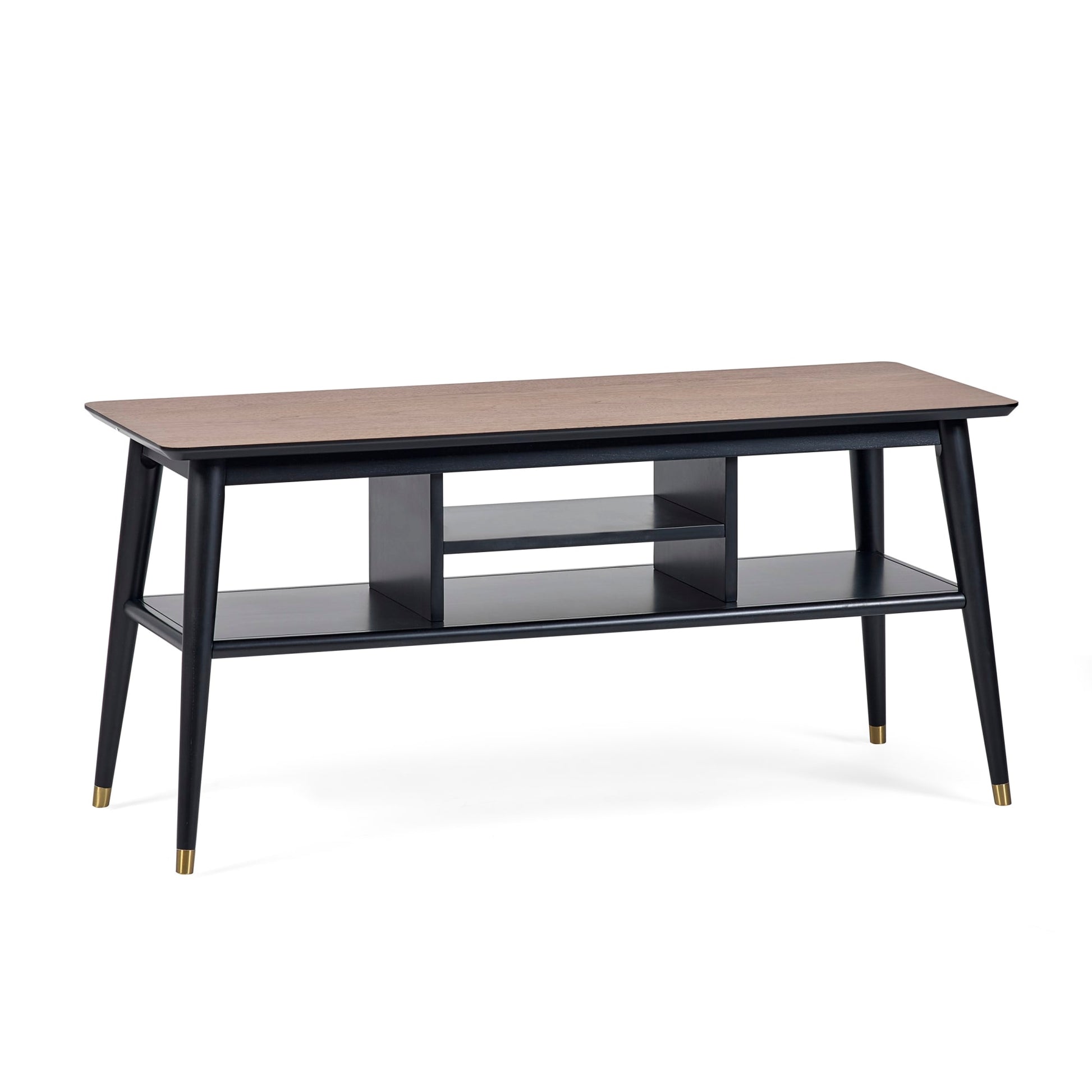 The Findlay collection combines retro design elements with a modern twist. With a walnut and black finish and brass tipped legs – this collection will uplift an eclectic range of décor styles. This collection includes a rectangular dining table, square dining table, coffee table, lamp table, and media unit.