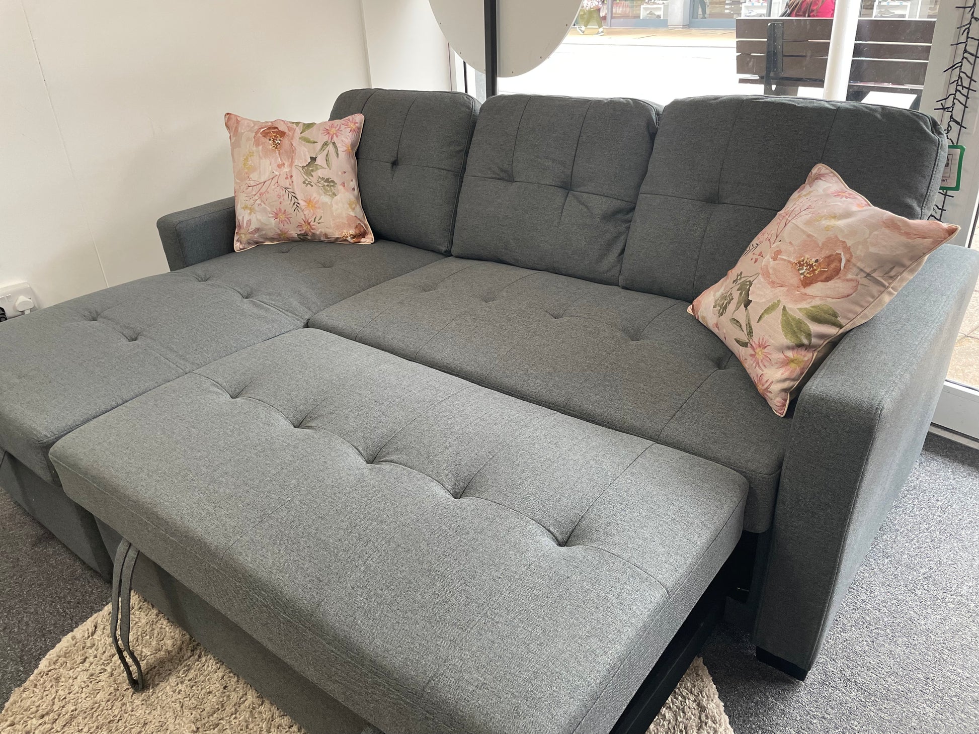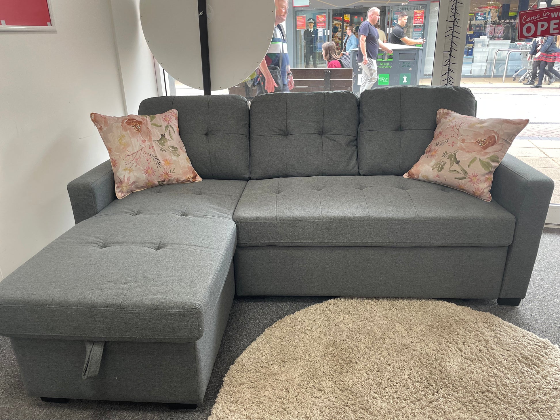 Experience the versatility of the Frankie Corner Sofa Bed with Storage. This stylish piece features a reversible corner that can be left or right handed, perfect for any layout. The ottoman storage provides extra space for your belongings, making it both functional and chic. Upgrade your space with this modern sofa bed.
