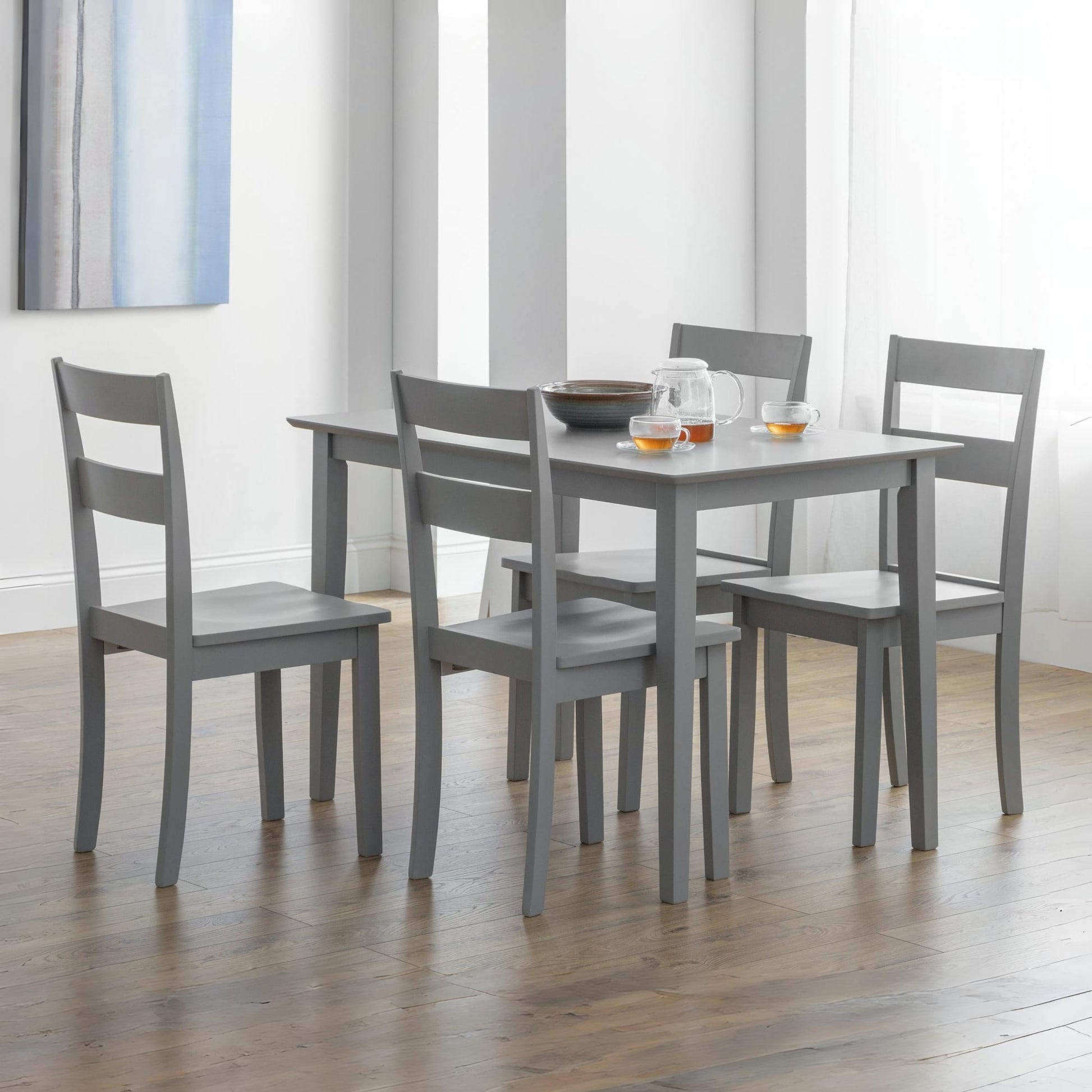 Stylish yet practical, the Kobe Compact Rectangular Table is a chic addition to any home. Comfortably seating up to four people, this compact dining table is perfect for those smaller kitchen areas. Finished in a modern grey lacquer, this dining table will make a stunning addition in a wide range of dining room decor. The perfect match for the Julian Bowen Kobe Dining Chair.