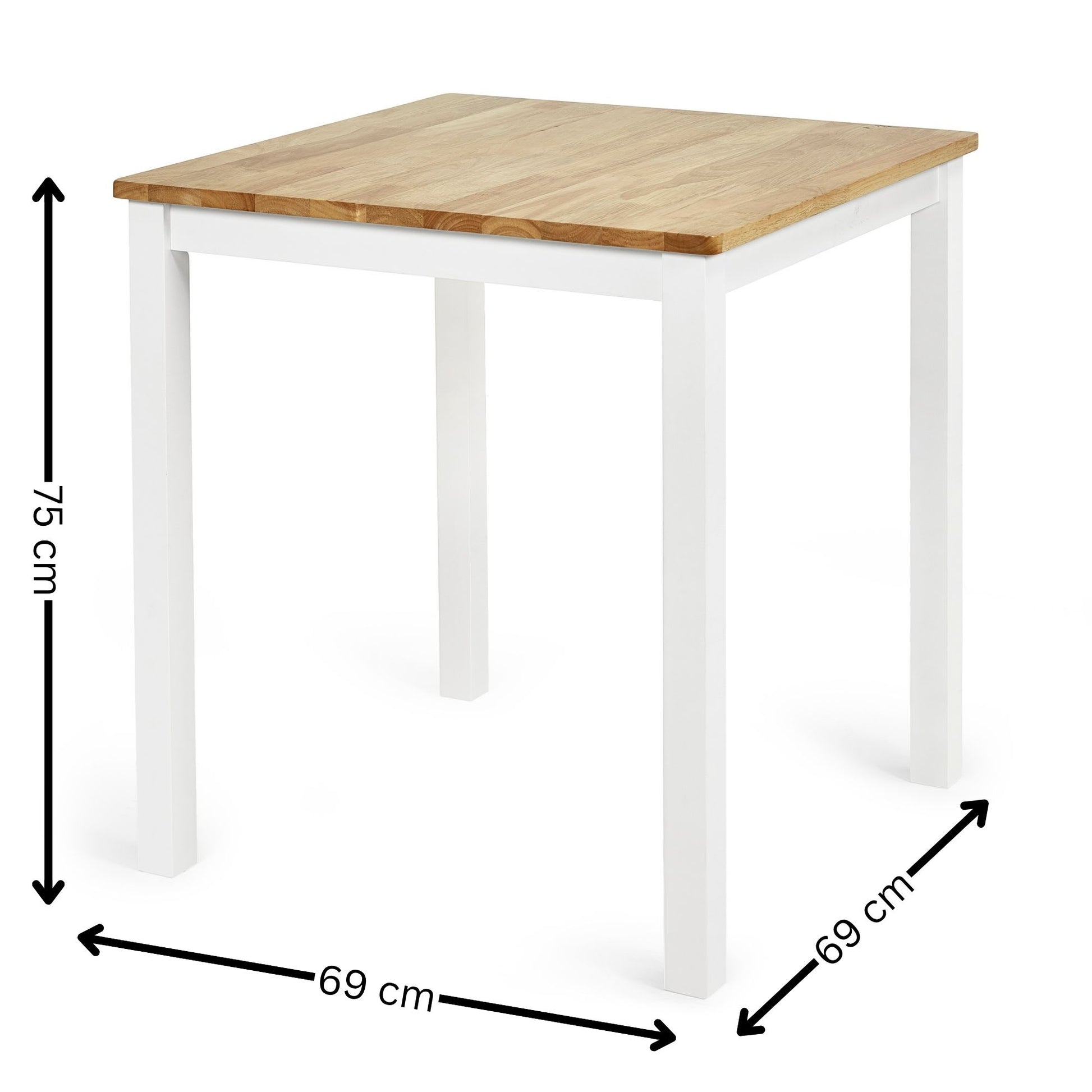 Bring timeless charm and practical style into your dining room or kitchen with this beautifully crafted square dining table. Featuring a natural light tabletop paired with fresh white legs, it offers a warm, classic look that complements both modern and traditional interiors. Compact in size yet sturdy in design, it’s ideal for smaller spaces while providing ample room for everyday meals or casual gatherings. Built from durable materials to withstand regular use while maintaining its elegant appeal. Full assembly required. Chairs sold separately.