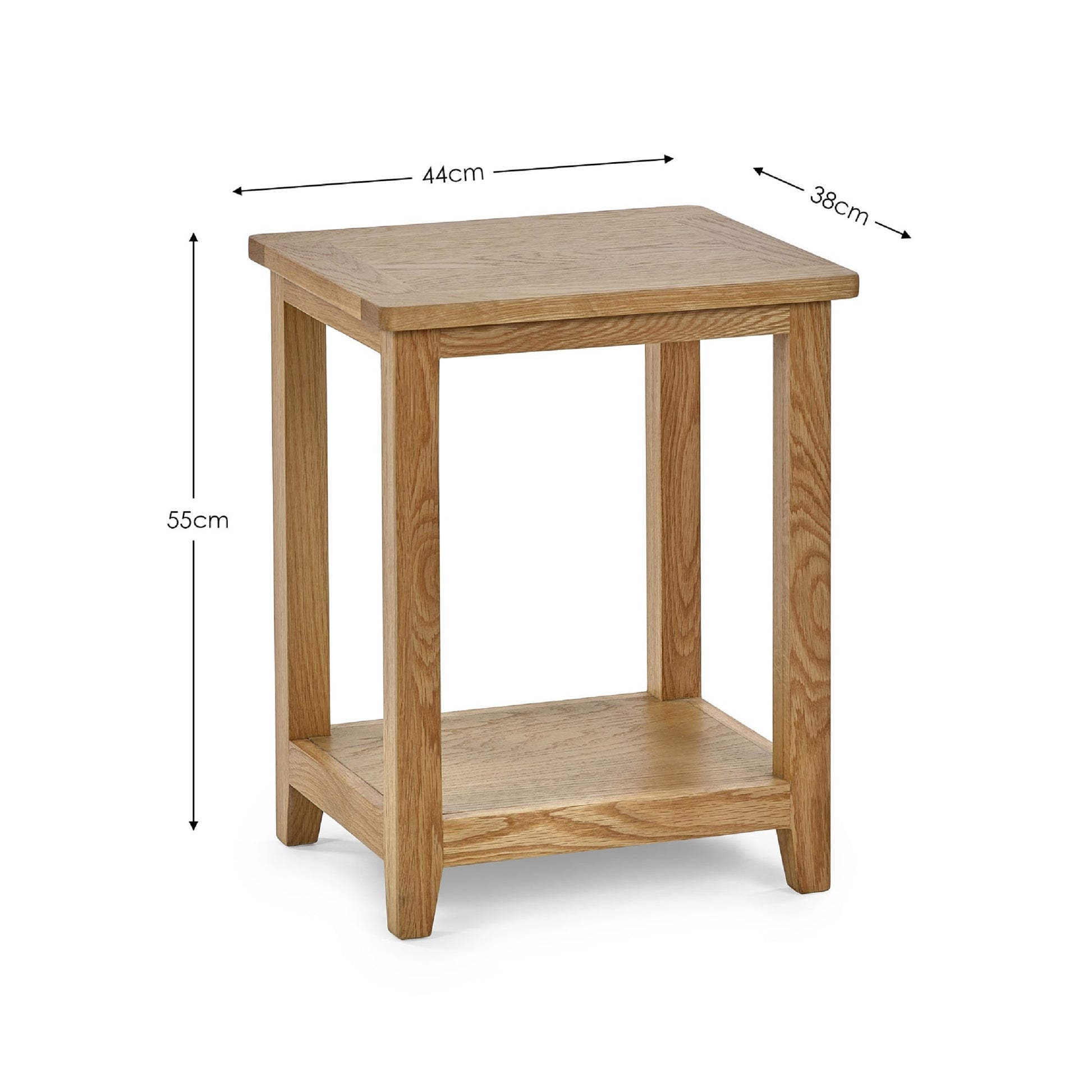 The Mallory Side Table is crafted from solid oak and oak veneers giving a simple and stylish design that is perfect for any living space. Durable and timeless, with a shelf below for added storage space.