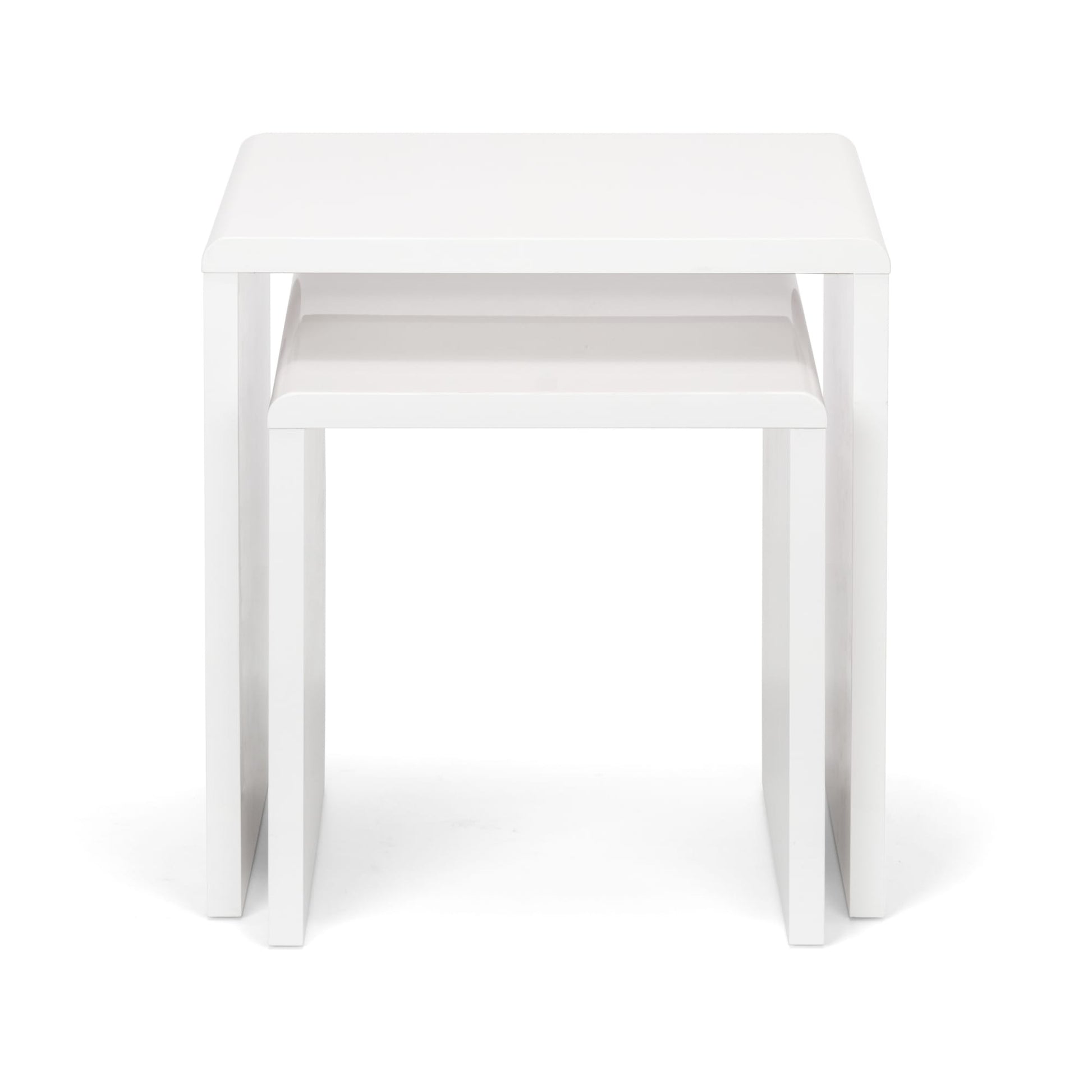 The Manhattan Nest of 2 Tables is presented in a stunning white high gloss lacquer for a clean, contemporary image that fits beautifully in any living space. It features two nesting tables that sit together to offer a versatile, space-saving solution.
