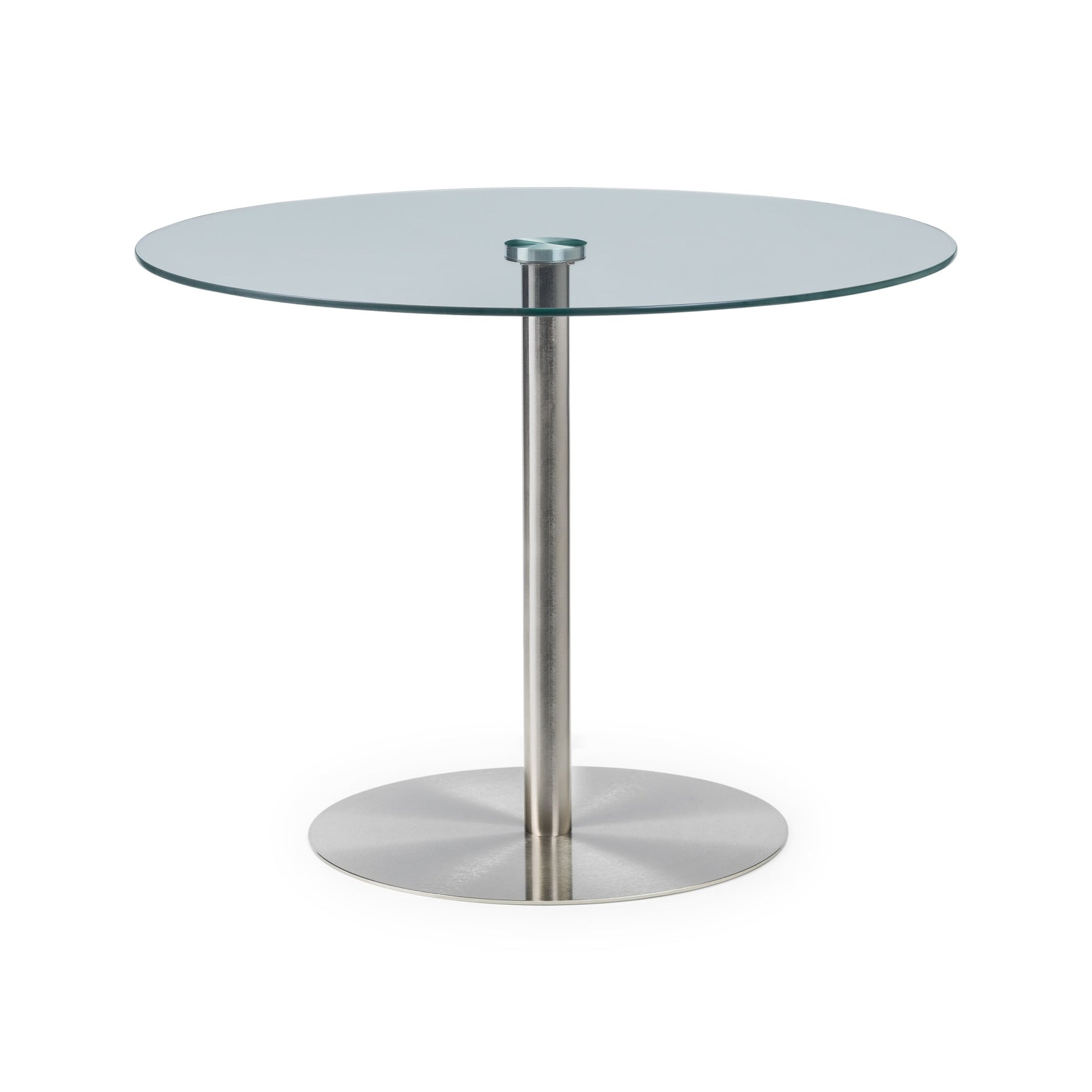 This contemporary round glass table maximises space in any kitchen or dining area. Constructed from a sturdy chrome base, with a clean and crisp round glass top adding a touch of elegance to any décor. Mix and match with a wide range of dining chairs to create your perfect dining set.