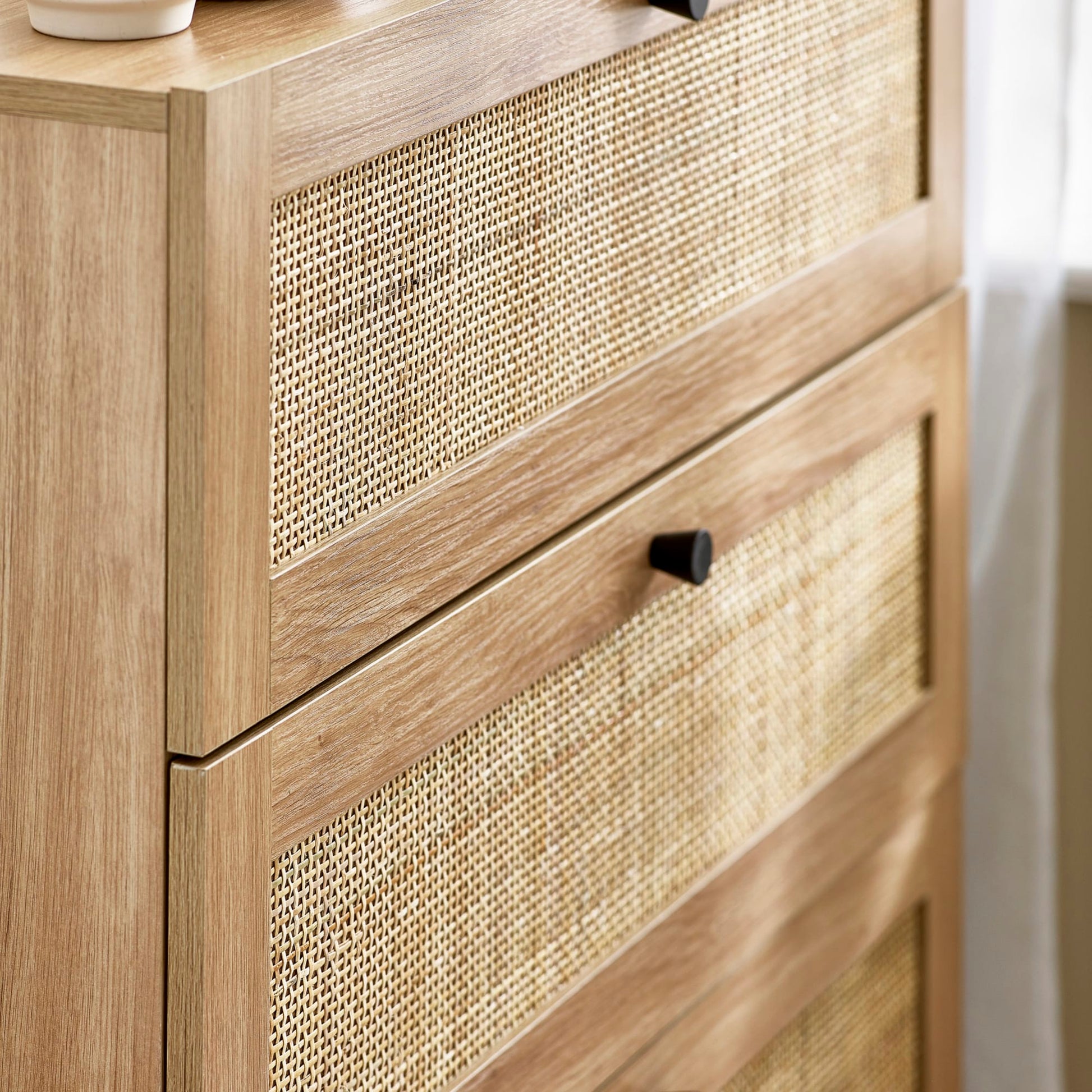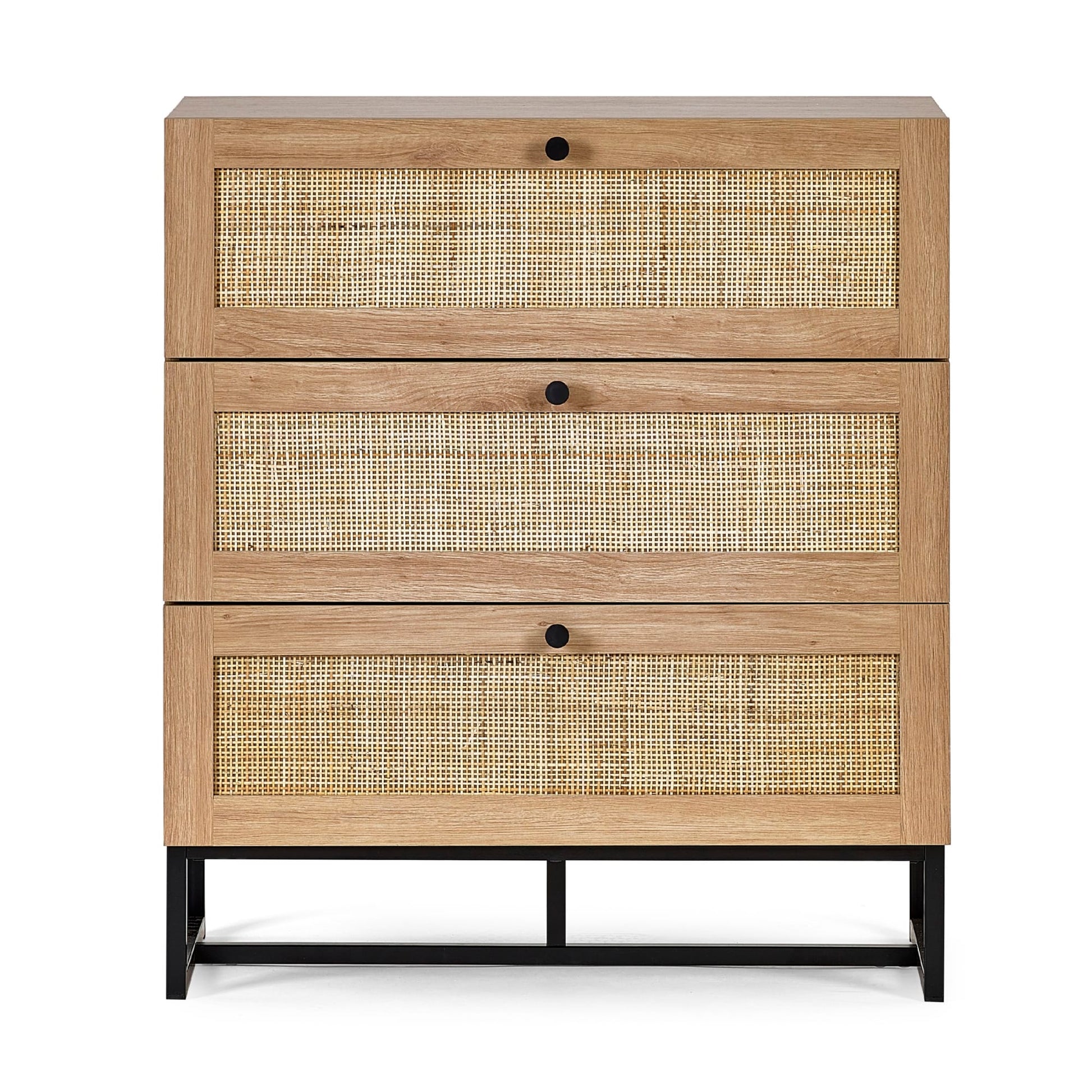 Fusing modern construction with retro design elements, the Padstow collection will exquisitely complement any styled home. The natural rattan fronts and industrial-style base collaborate perfectly to leave a warm yet chic aesthetic in your home. This range includes a bedside, 3 drawer chest, 6 drawer chest, wardrobe, coffee table, TV unit, sideboard, and tall bookcase.