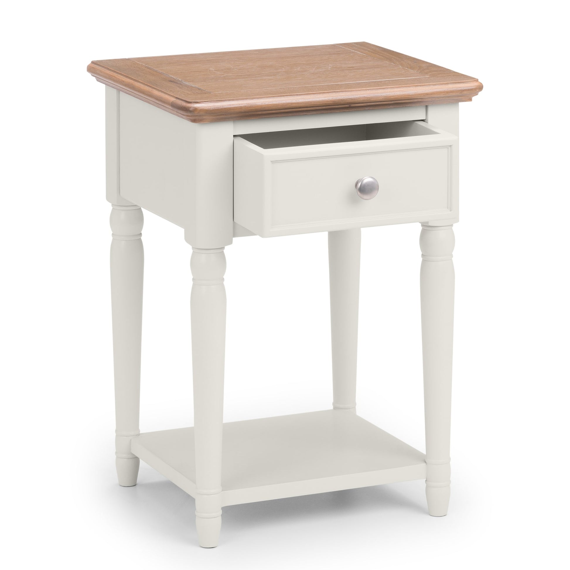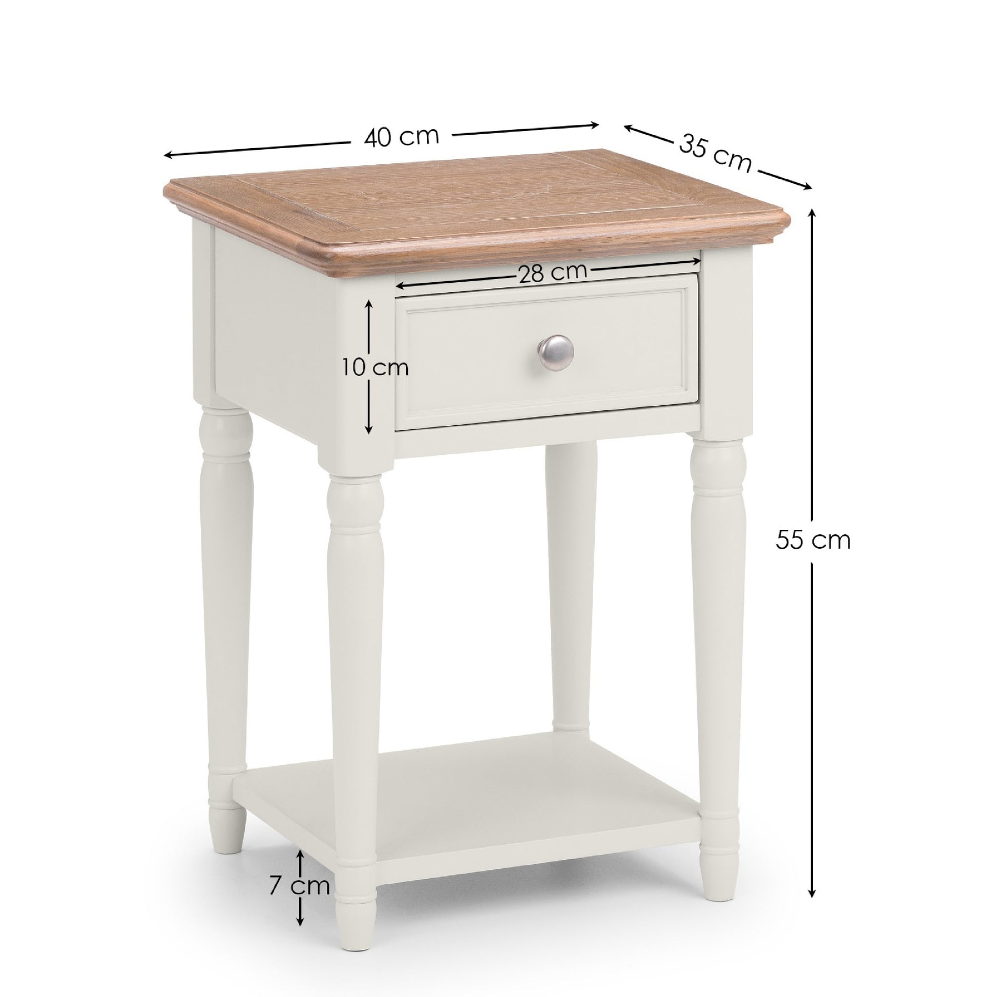 This timeless side table offers an authentic antique design with a classic turned leg detail perfect for contemporary spaces as well as traditional homes. Finished in a grey lacquer with a limed oak effect top, the Provence features additional storage with a drawer, the perfect size for storing controllers or magazines. Part of the Provence dining and occasional collection, this side table becomes a stunning set when paired with other pieces from the Provence range.