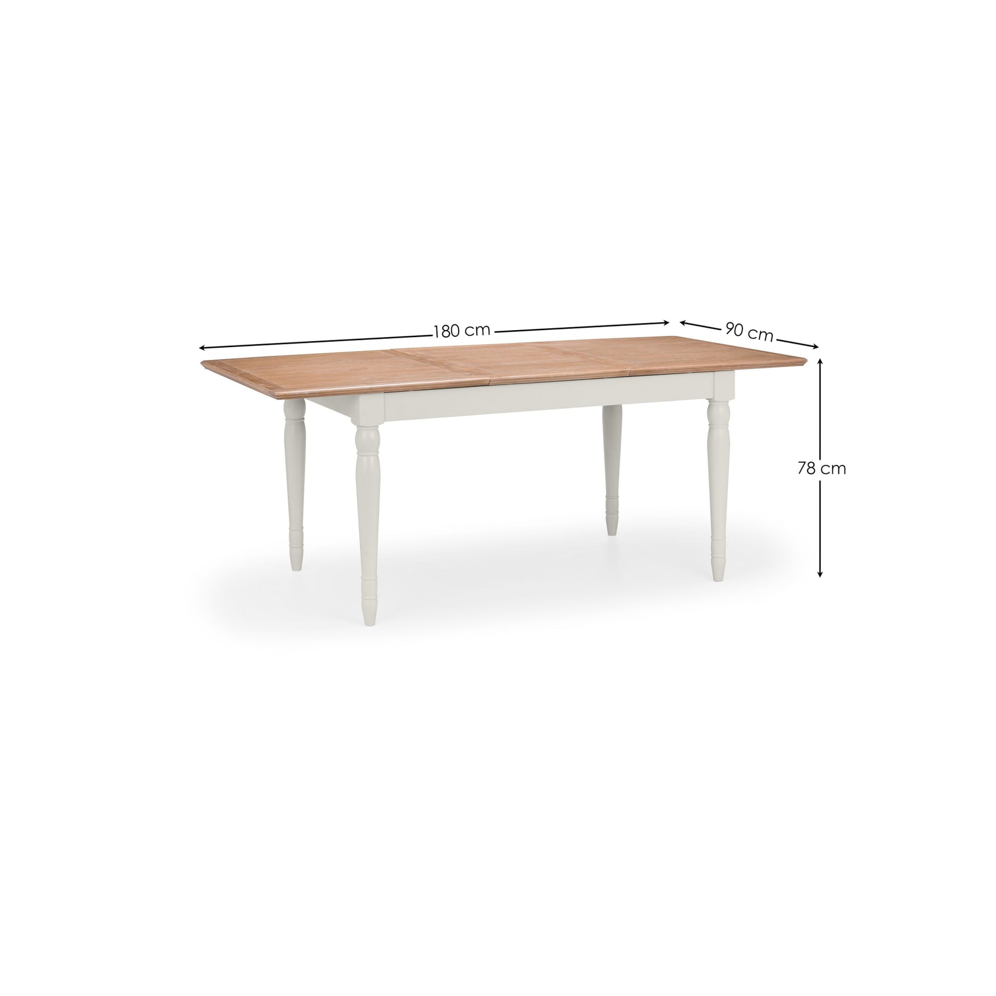This timeless table offers an authentic antique design with a classic turned leg detail perfect for contemporary spaces as well as traditional homes. Finished in a grey lacquer with a limed oak effect top, this Provence features an easy to use 40cm butterfly extension system allowing the extra room for your dinner guests. Part of the Provence dining and occasional collection, this dining table becomes a stunning set when paired with the Provence dining chairs.