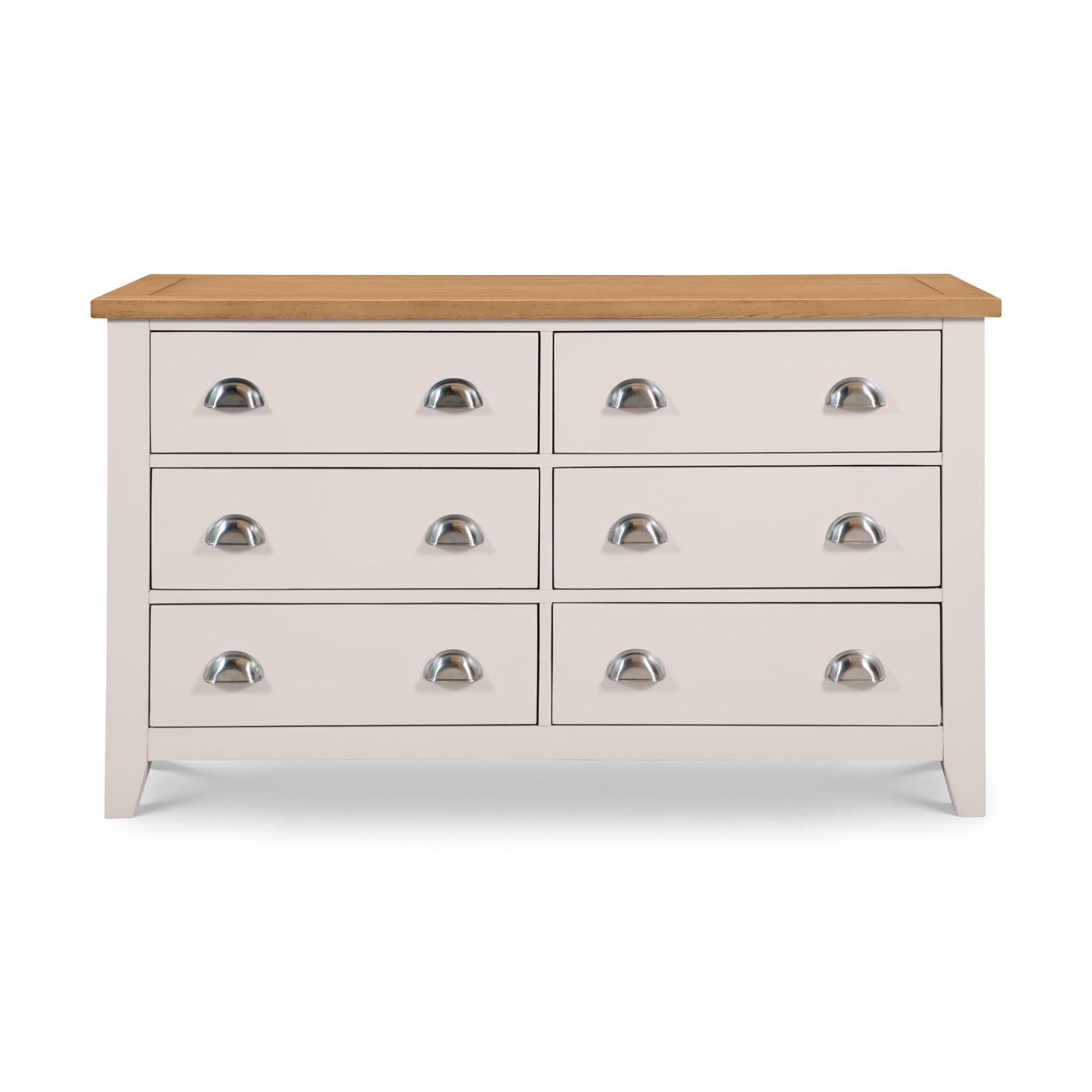 Finished in an elephant grey lacquer, the Richmond bedroom range is a timeless, elegant design suitable for a wide range of décor. Constructed from white oak and oak veneers, this lacquered bedroom range brings a modern twist on a traditional construction. Consisting of 6 spacious drawers, this 6 drawer chest not only offers enough room for clothes to keep your room tidy, but also a spacious surface.