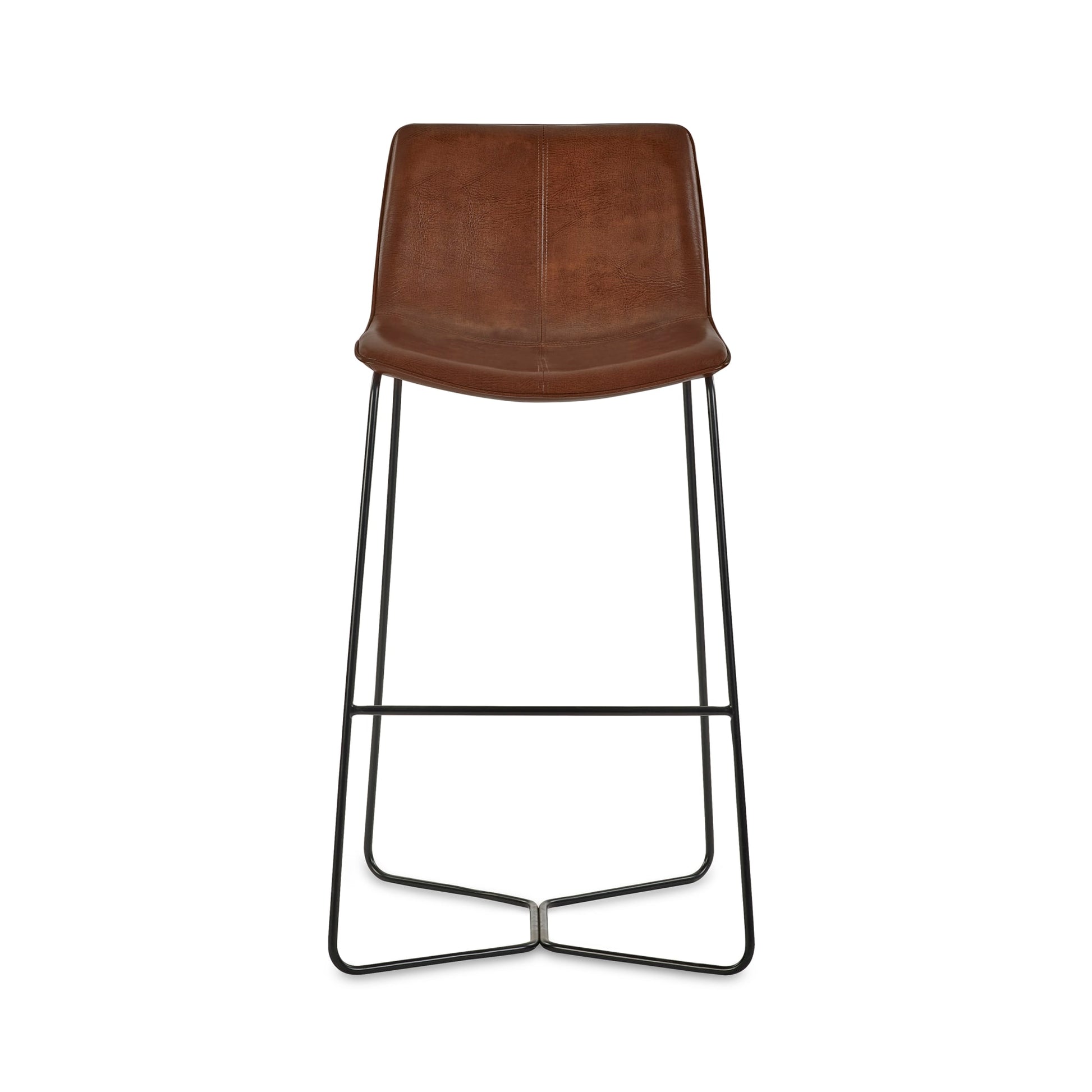 Transform your kitchen or bar into a stylish gathering spot with this set of 2 bar stools. Featuring a sleek modern industrial design, these stools are upholstered in soft PU leather with a subtle grain that adds a touch of warmth and sophistication. The gently curved backrest and cushioned seat offer all-day comfort, while the slender black powder-coated iron legs create a striking contrast and keep the look light and airy. Perfect for casual dining, entertaining, or simply relaxing, these stools bring together style, durability, and comfort in one versatile package. Full assembly required.