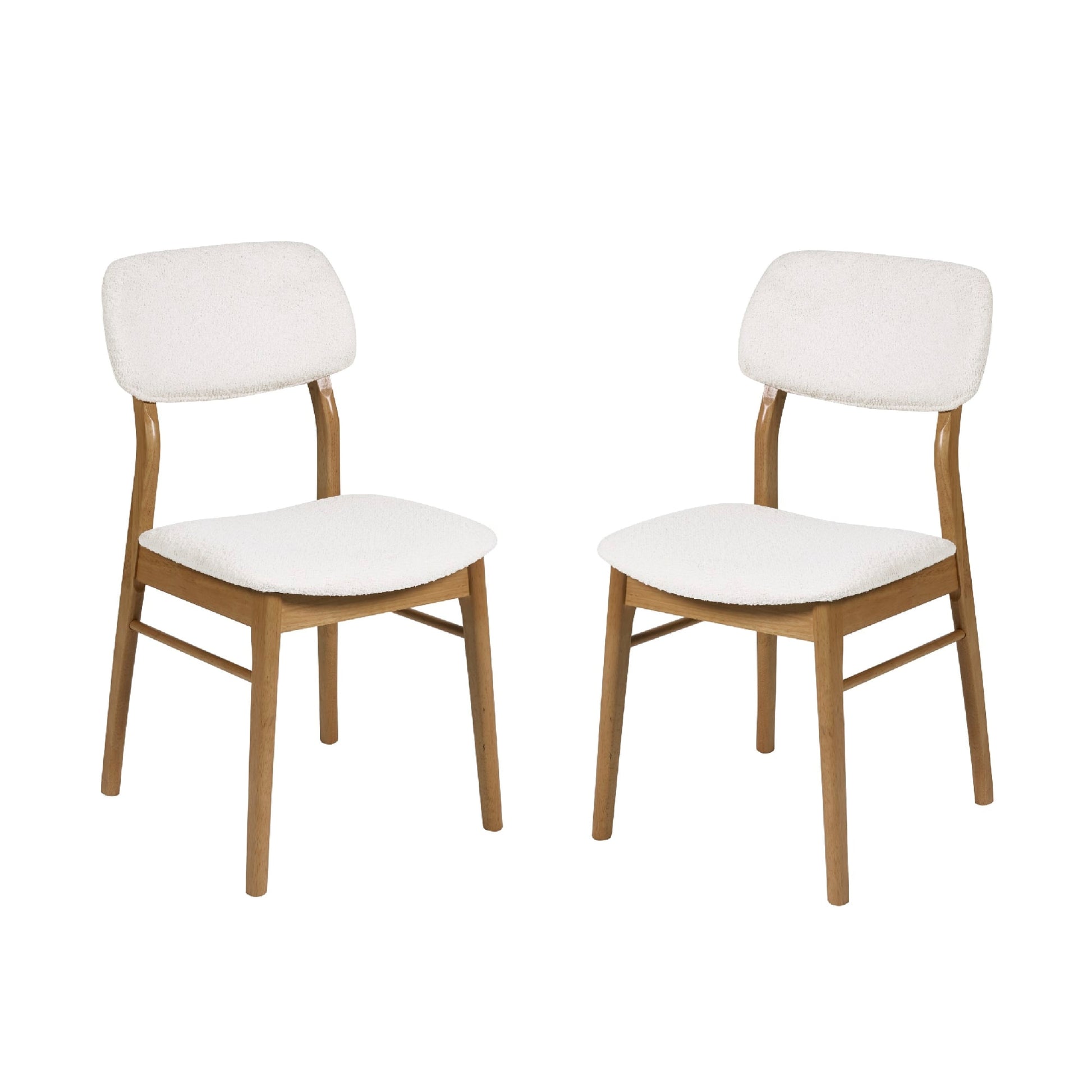 Bring a sense of warmth and understated elegance to your dining space with these beautifully upholstered dining chairs. The soft white finish offers a rich, tactile feel that is both inviting and stylish, while the gently curved seat and backrest provide lasting comfort and support. Set on sturdy legs, they offer a seamless blend of comfort and style, making them a refined addition to any setting as dining room chairs.