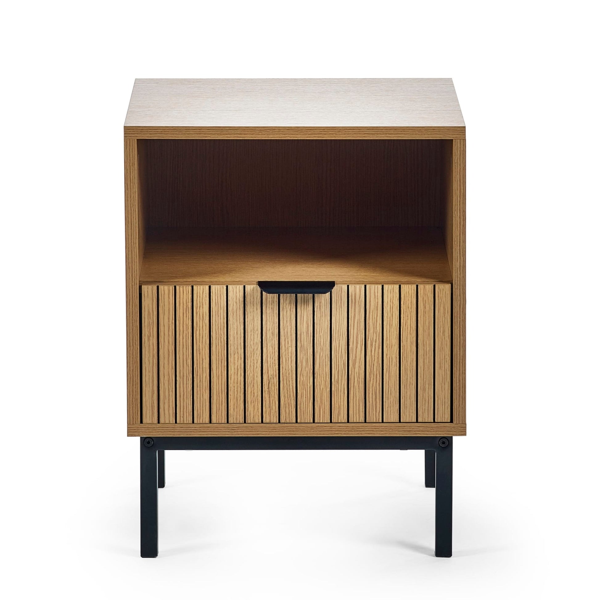 Enhance your space with the Sia Side Table, a versatile addition to your living or bedroom areas. This stylish piece features a smooth top and a distinctive slatted design that adds character and flair. Its compact size makes it perfect for small spaces, while the open shelf below is ideal for showcasing your favourite books or decor. The convenient drawer allows for easy storage of small items out of sight. The sturdy legs add a modern touch, ensuring this side table is as practical as it is appealing. Assembly is required, making it simple to incorporate into your decor.