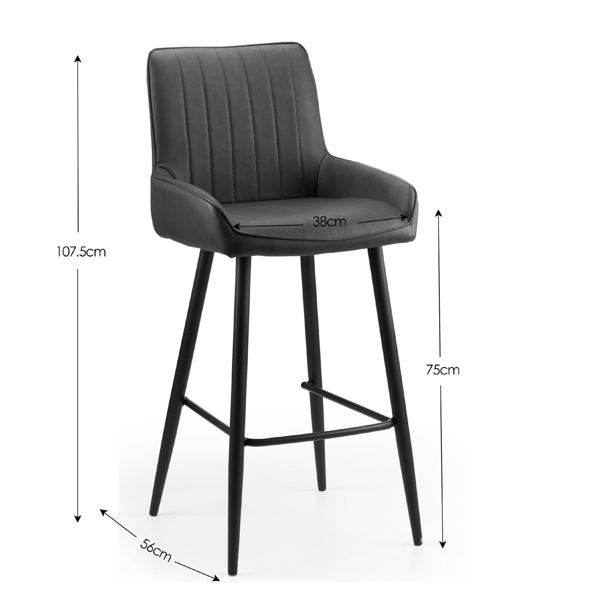 This Soho Barstool is finished in an antique black faux leather with a striking black metal frame, sure to compliment any contemporary décor. The perfect addition to any dining or bar area to create an industrial, retro feel within any space.