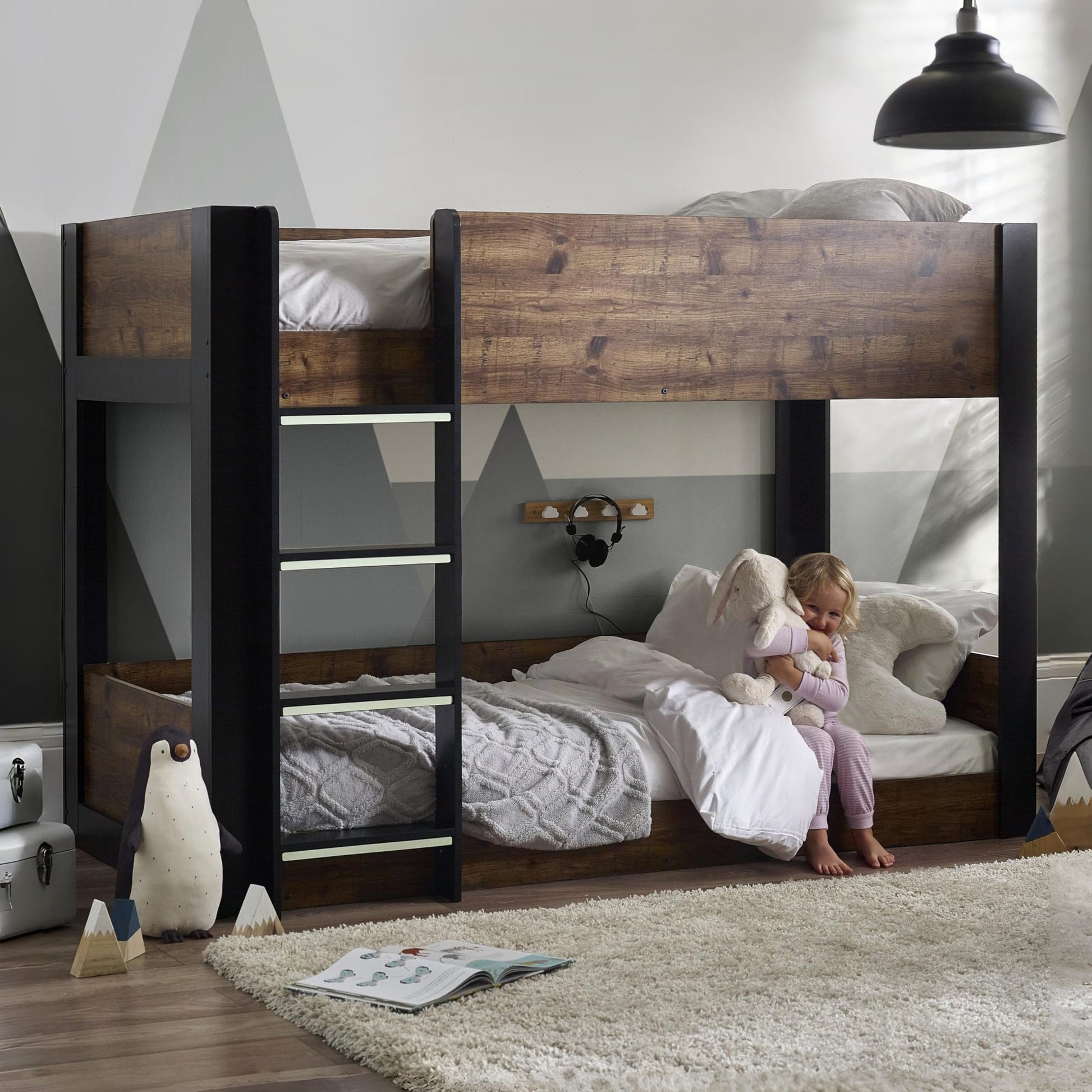 Transform your child's room into a cosy haven with the Solomon Bunk Bed. Available in a choice of finishes to seamlessly complement any decor, it sets the stage for a stylish and inviting space. The standout feature of this bunk bed is the playful glow-in-the-dark steps, turning bedtime into an enchanting adventure while ensuring safe access to the top bunk. Crafted with safety as a top priority, this bunk bed features a boarded headboard and footboard, offering an extra layer of security for your little ones.
