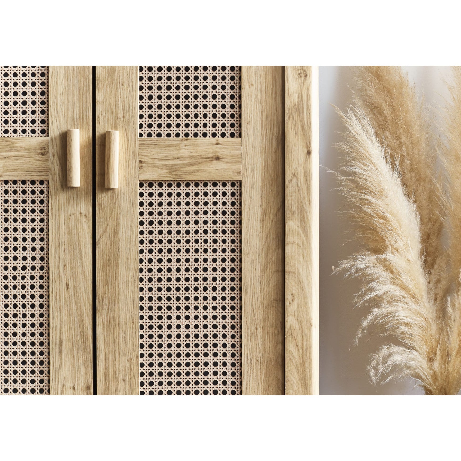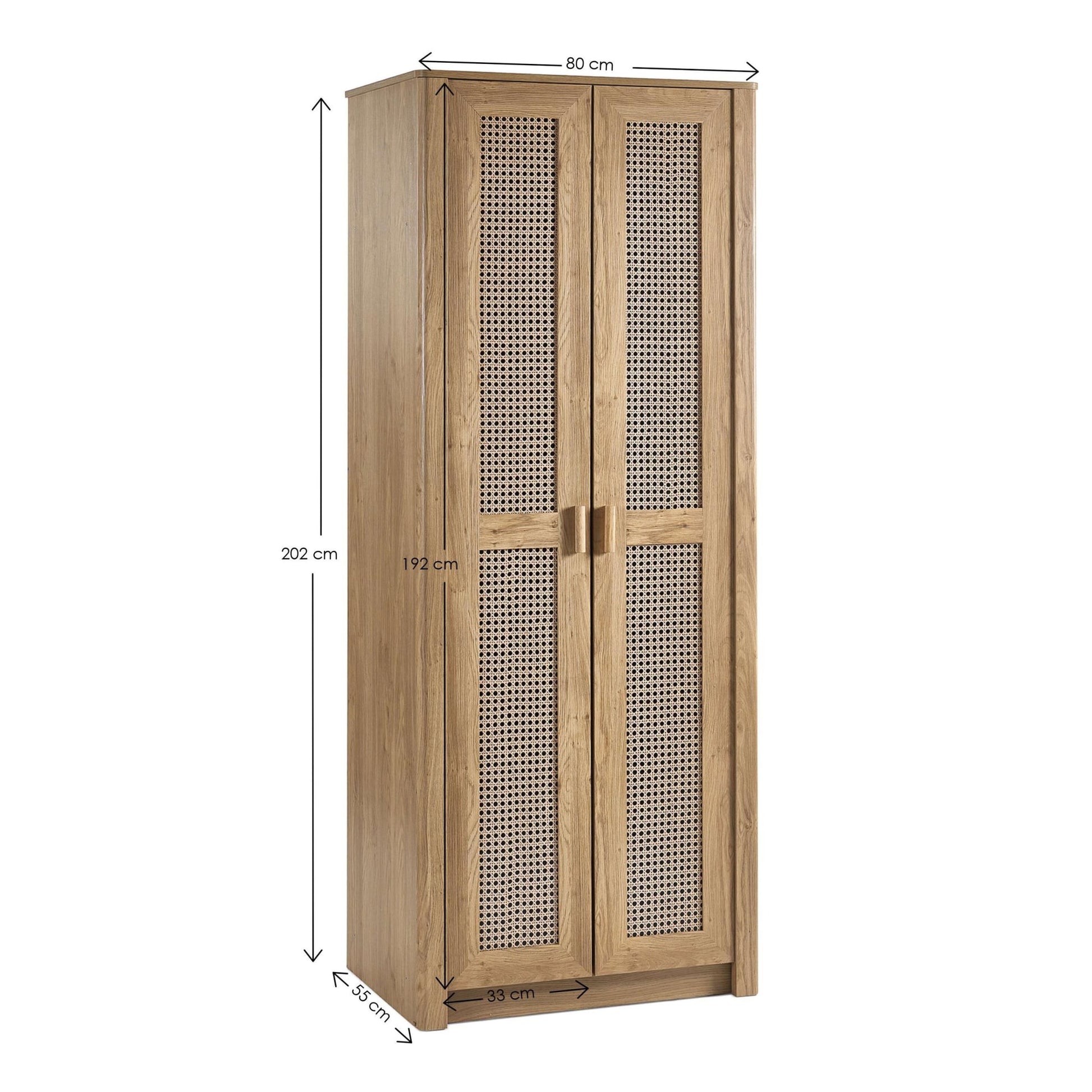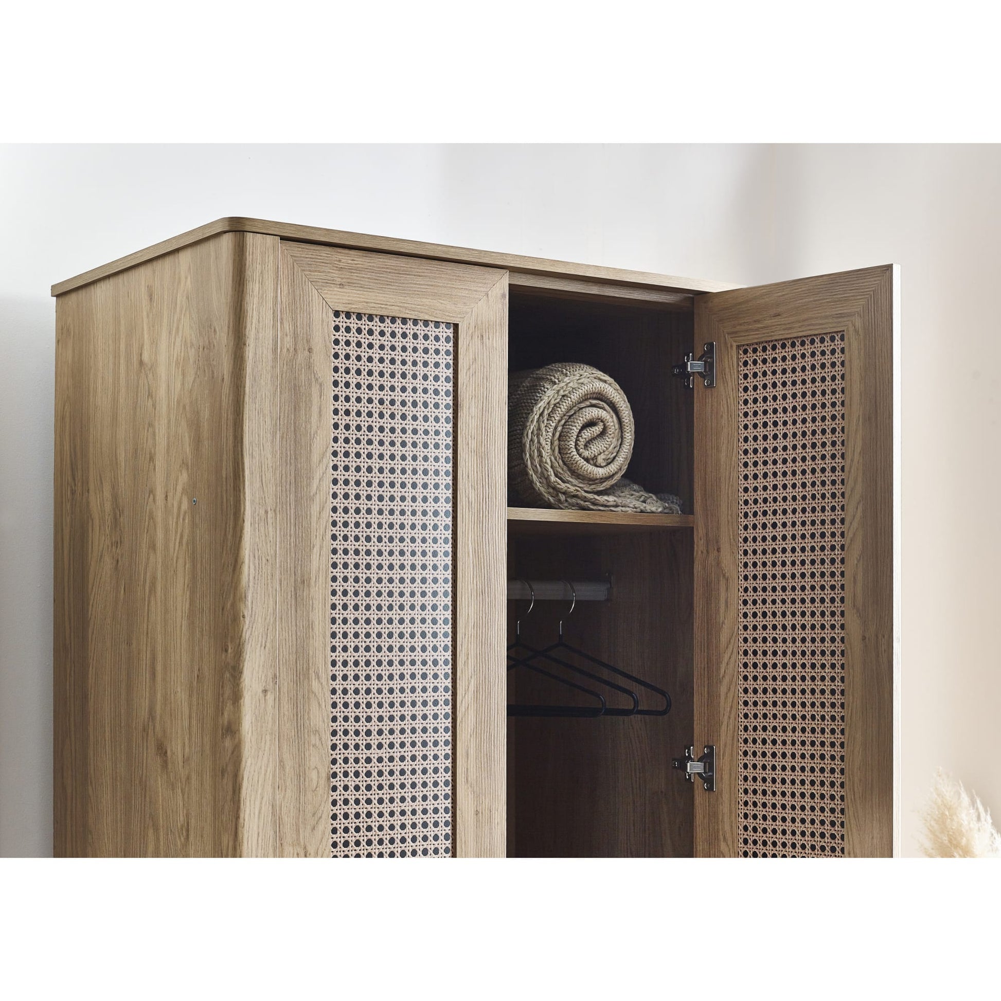 A beautifully sleek design with a bohemian feel, the Sydney 2 Door Wardrobe offers exquisitely curved edging accompanied by a raised lip around the edge providing a practical addition, stunningly combined with a rattan-effect sticker front. Available in a choice of finishes and featuring a double door design, it provides plenty of hanging space for your clothes and belongings, creating the perfect airy, warm feel within your home.