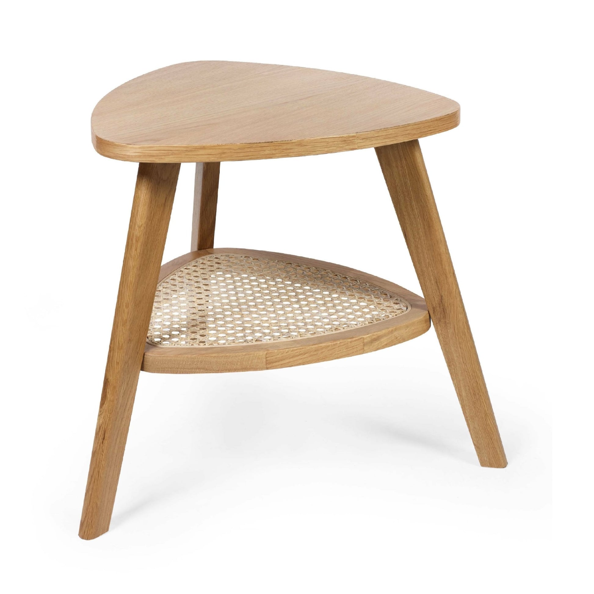 Bring effortless sophistication to your space with this stylish side table. Featuring a rattan-inspired shelf, it blends natural charm with a modern edge for a look that’s both relaxed and refined. The natural wood finish adds warmth and style to any room. Perfect for holding a lamp, books, or your favorite décor, it combines everyday practicality with standout design. With full assembly required, you’ll have it set up and styled in no time.