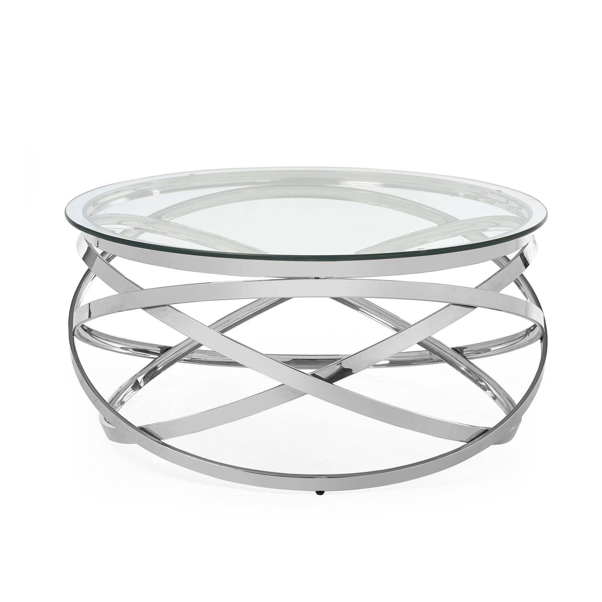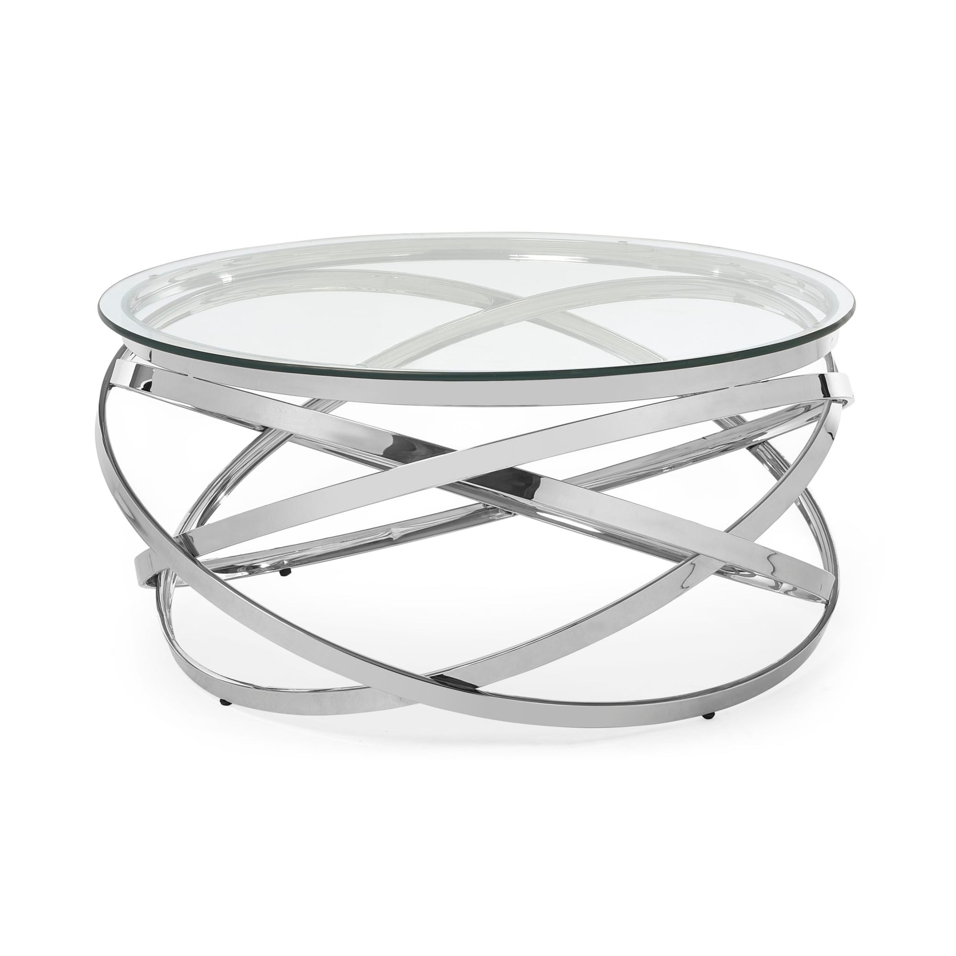 Unveil a new level of sophistication with the Vienna Coffee Table. This exquisite piece boasts a captivating circular design with an elegantly curved metal swirl base that infuses your space with artistic flair. The clear glass top enhances its modern, airy feel, making it a standout conversation piece and a stylish focal point. Bringing a dash of elegance to your home.